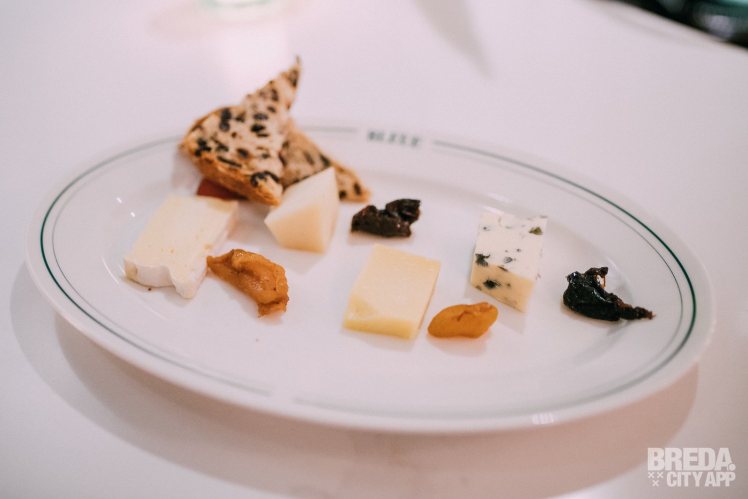 En dan het dessert! Wij gaan voor de brownie en de kaasplank. Op de kaasplank liggen vier kazen: een Nederlandse en een Franse schapenkaas, een oude kaas en een blauwschimmel. Deze kazen worden vergezeld door pruimen, abrikozen en twee heerlijke stukjes licht geroosterd krentenbrood. Echt een aanrader voor de kaasliefhebbers onder ons!