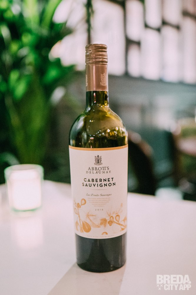 Onze hoofdgerechten worden gecomplementeerd door een wijn van Abbotts & Delaunay, een Cabernet Sauvignon. Een rijke, kruidige en complexe wijn met karakter. In de geur en elegante smaak aroma’s van aardbeien en zwarte bessen, kaneel, munt en hele subtiele houttonen. Een fluweelachtige lange afdronk met goed gebalanceerde tannines.