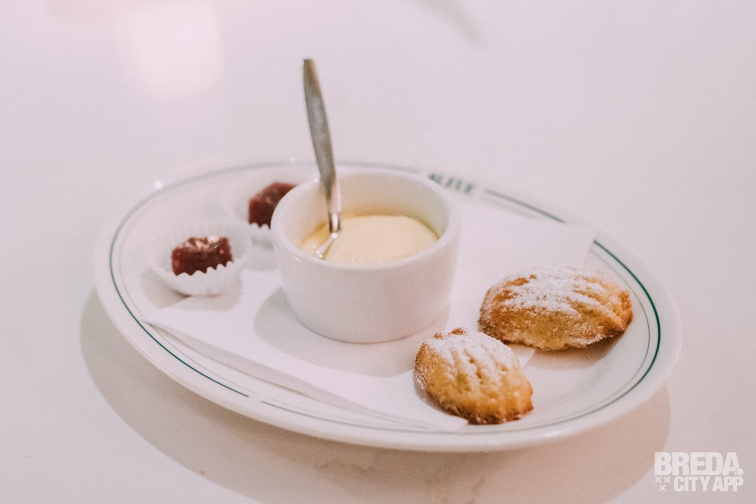 Het diner sluiten we af met een lekker kopje koffie en de huisgemaakte Madeleines: krokant van buiten, warm en luchtig van binnen. Doe daar een beetje lemon curt bij en je avond kan niet meer stuk!