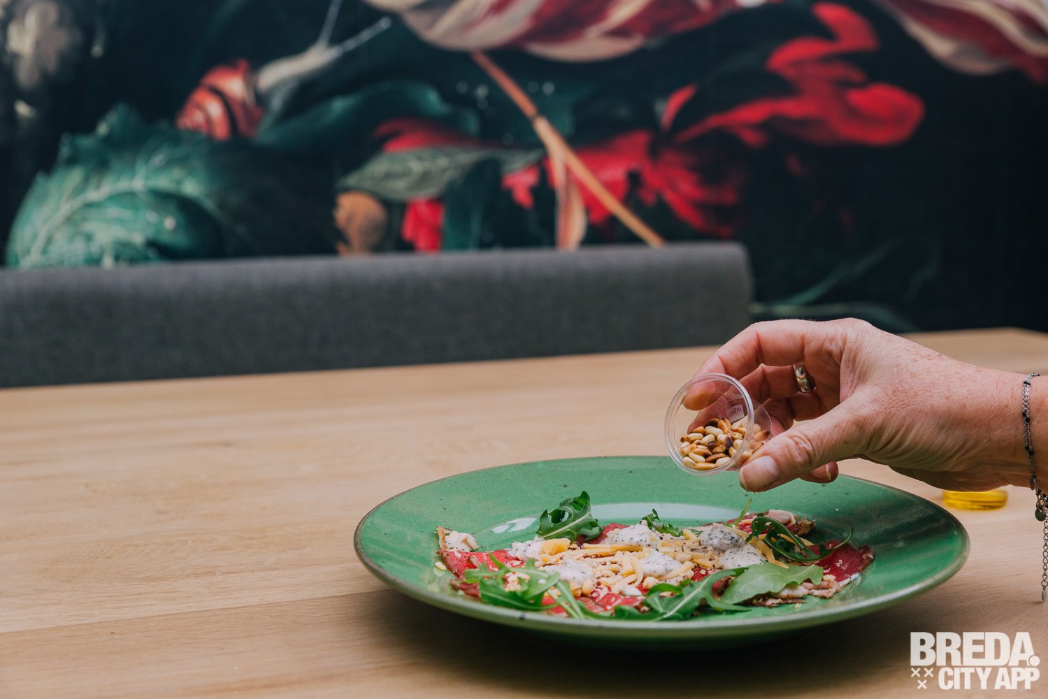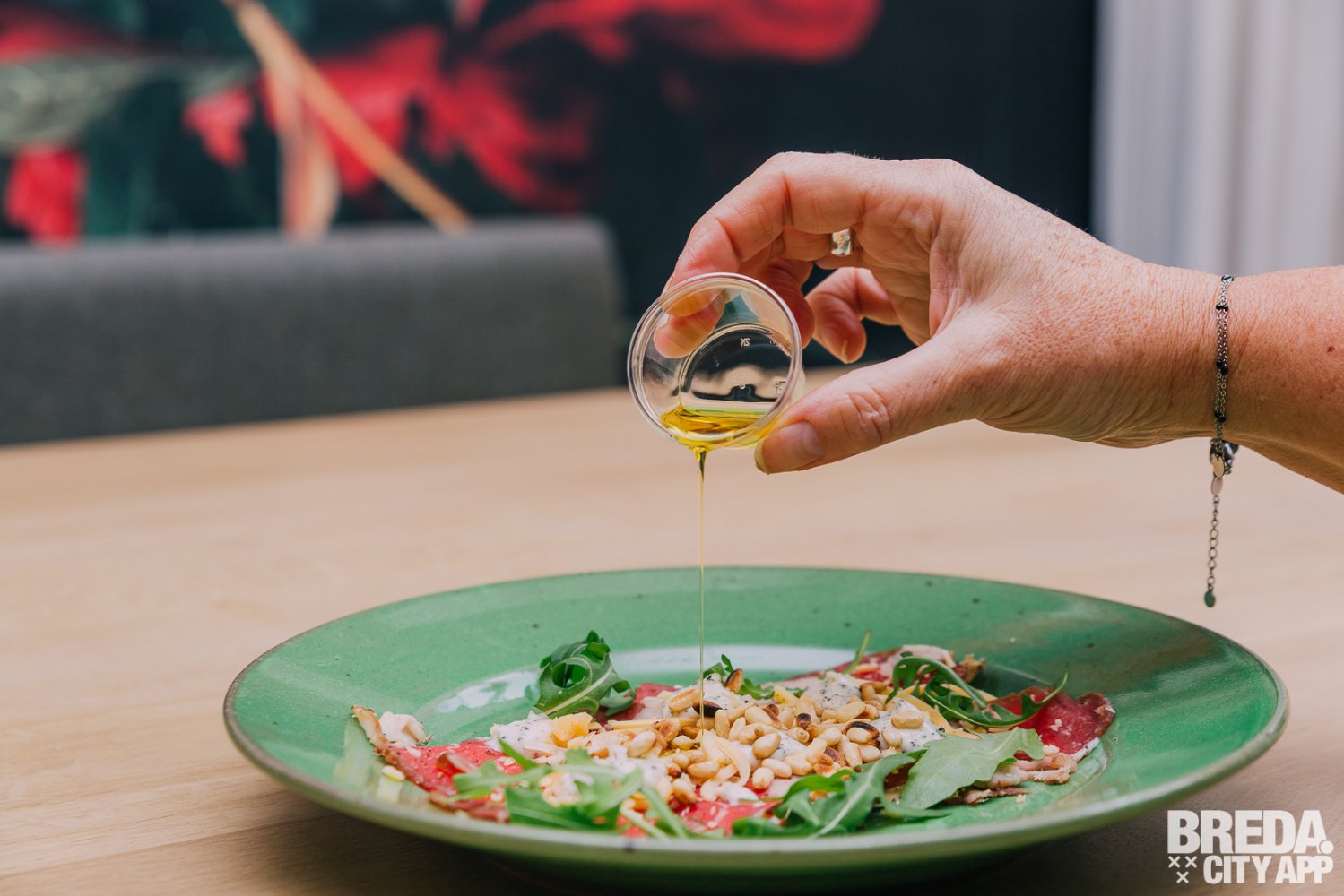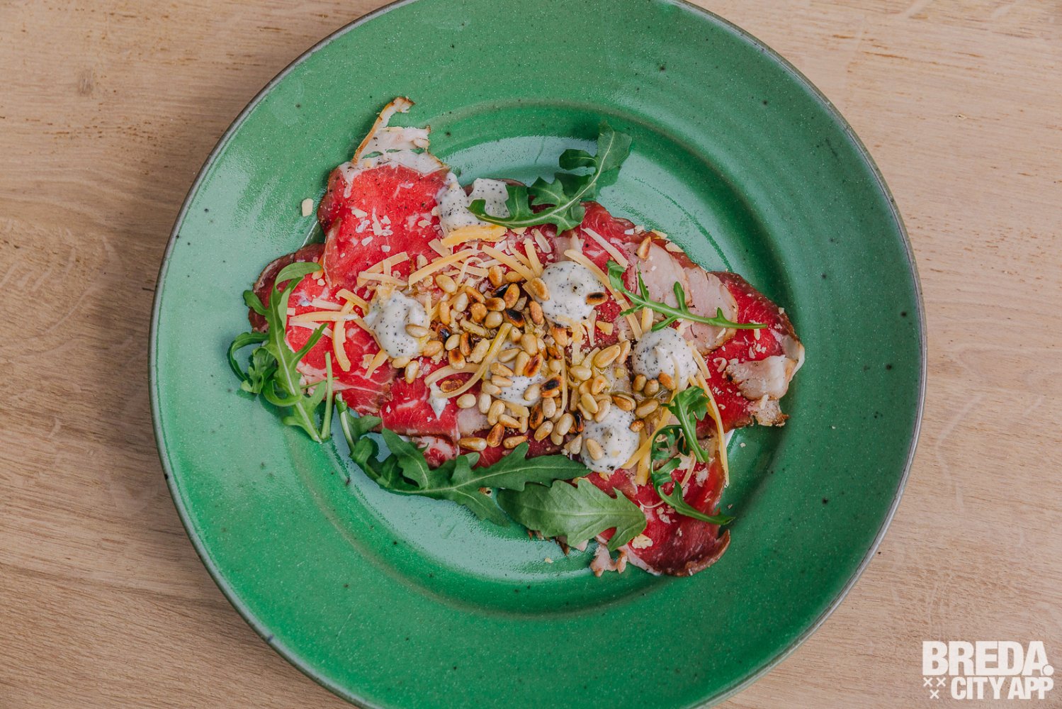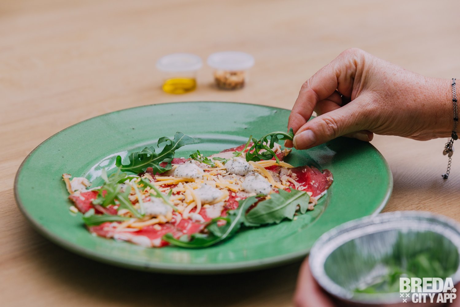Het broodje komt uit in de oven, de wijn is ingeschonken, tijd om het voorgerecht te serveren. Denk niet dat je bij het Proeverij menu veel in de keuken staat. Als de oven aanstaat kun jij verder achterover leunen. Deze week staat er een bestseller op het menu: carpaccio. Denk aan de lekkerste carpaccio die je ooit op hebt, en dan nog een tikkie lekkerder. Ja dat kan echt! Een flinke portie malse gerookte Rib-Eye, geserveerd met een romige truffelmayonaise, geroosterde pijnboompitjes en Reypenaar VSOP. De frisse Chardonnay die erbij wordt geschonken heeft exotisch fruit in de neus, subtiele citrustinten en een fluweelzachte afdronk. Een mooie match bij de intense smaak van dit fijn gerecht.