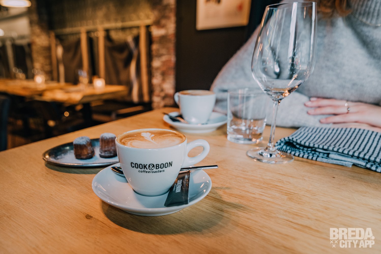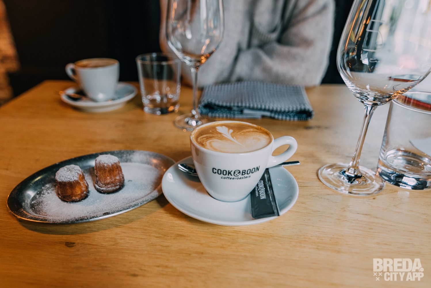 We starten de middag met een goede cappuccino en een huisgemaakte nog warme canelé. Dit is een luchtig Frans gebakje met rum en vanille en smaakt echt heerlijk! Een goed begin wat ons betreft.