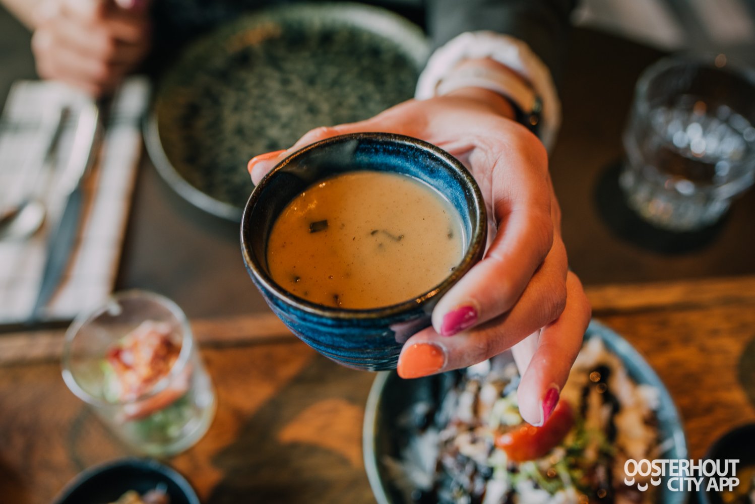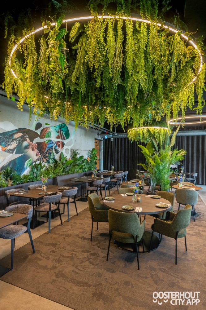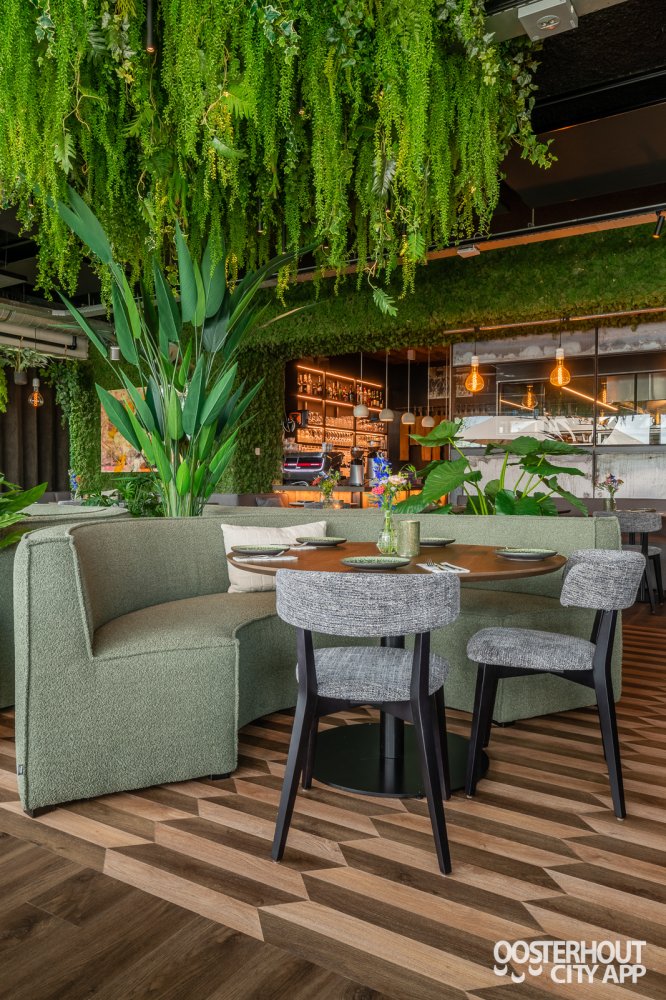 Na een warm welkom nemen we plaats aan een tafeltje in het restaurant. Het is er al gezellig druk en met het nieuwe interieur kijken we onze ogen uit. Het groen van alle (hang)planten in combinatie met het industriële karakter van het restaurant maakt het een fantastische hotspot. We kijken uit over het meer en genieten ondertussen van ons aperitief: de kleurrijke Virgin Aperol.