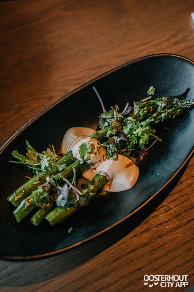 Ook de hele gamba's met piri piri saus en de beef tataki met whiskeyglaze, gerookte amandel en radijs zijn verrukkelijk. Deze gerechten worden geserveerd met brocolli asperges (uit de Jospergrill) met Griekse yoghurt, dadelbalsamico en sumac.