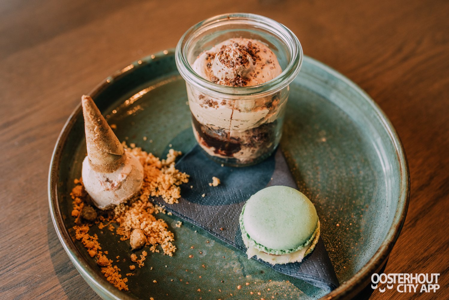 Na deze diversiteit aan vegetarische, vlees- en visgerechten is het belangrijk dat er ruimte overgehouden wordt voor het dessert, want bij de 5-gangen proeverij krijg je zowel een zoet als kaasplateau! Het zoete plateau bestaat uit een mini Houtse Cornetto, een macaron en romige chocolademousse met stukjes brownie. In één woord: geweldig!