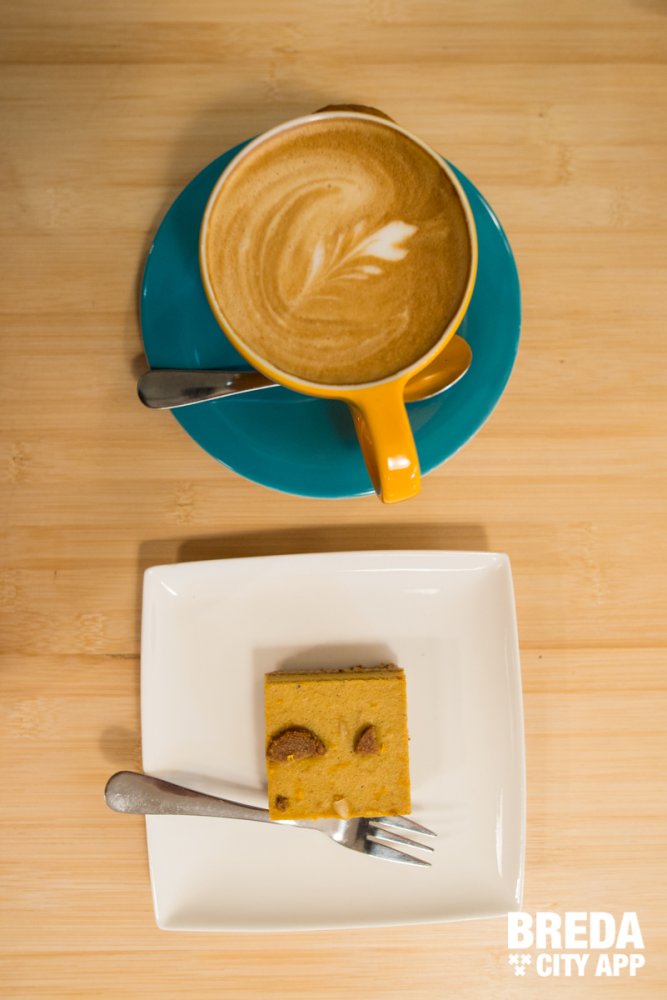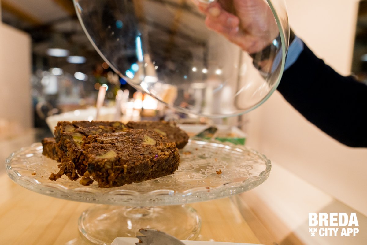 Naast het buffet heeft LOFF ook glutenvrije, lactosevrije, veganistische taartjes zonder geraffineerde suikers. De taartjes heten ‘SHARPSHARP’ en er ligt op tafel een apart menukaartje voor. Naast de zelfgemaakte vegan chocoladevla, yoghurt en vers fruit gaan we ook voor een citroen-speculaas taartje van SHARPSHARP om te delen.