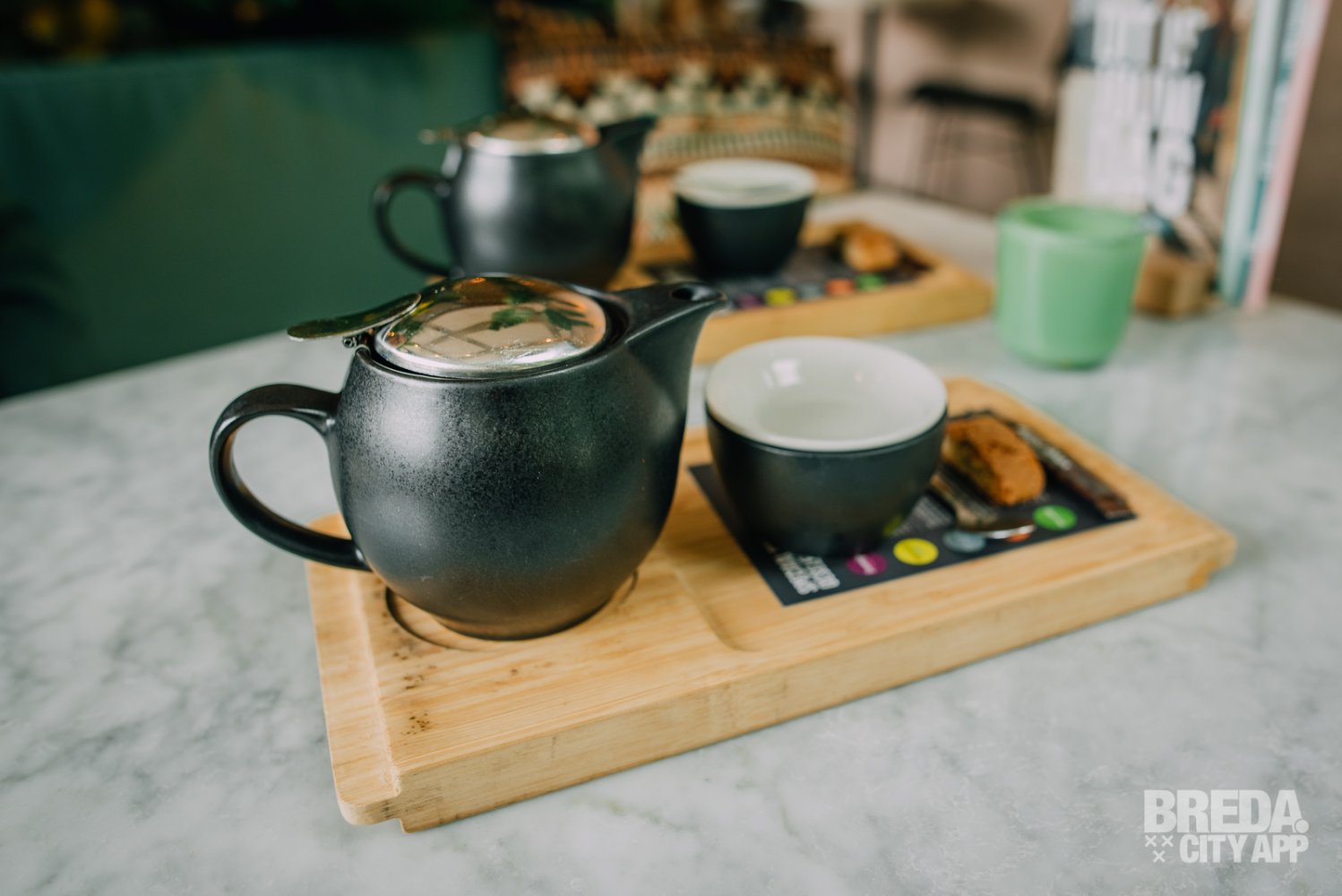 Als we eenmaal plaats hebben genomen wordt ons gevraagd welke smaak thee we willen. We gaan voor de rooibos met sinaasappel, kardemom, kaneel en gemberwortel. De smaak is zacht en licht kruidig en de kaneel proef je erg goed. Wat ons betreft een goede keuze.