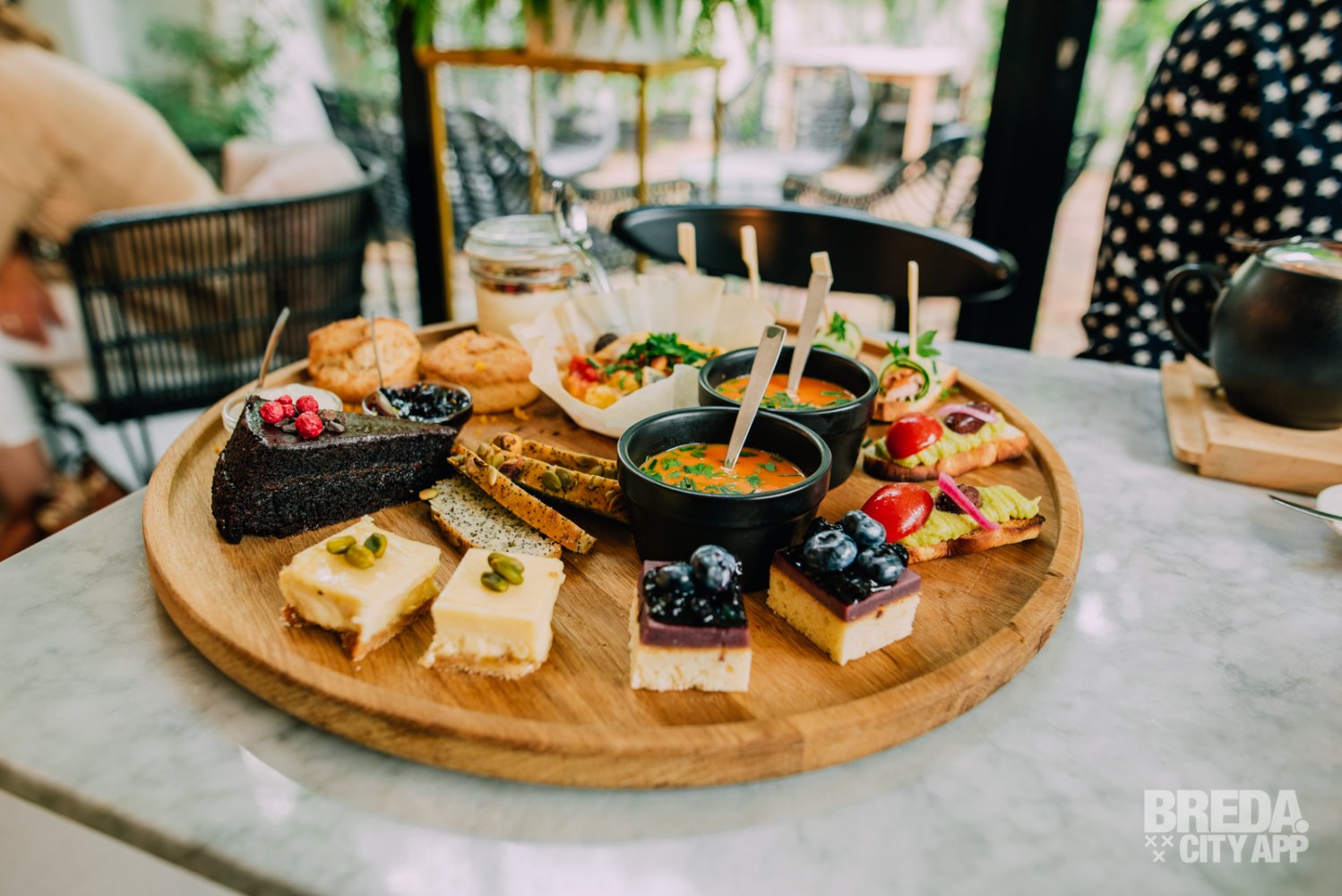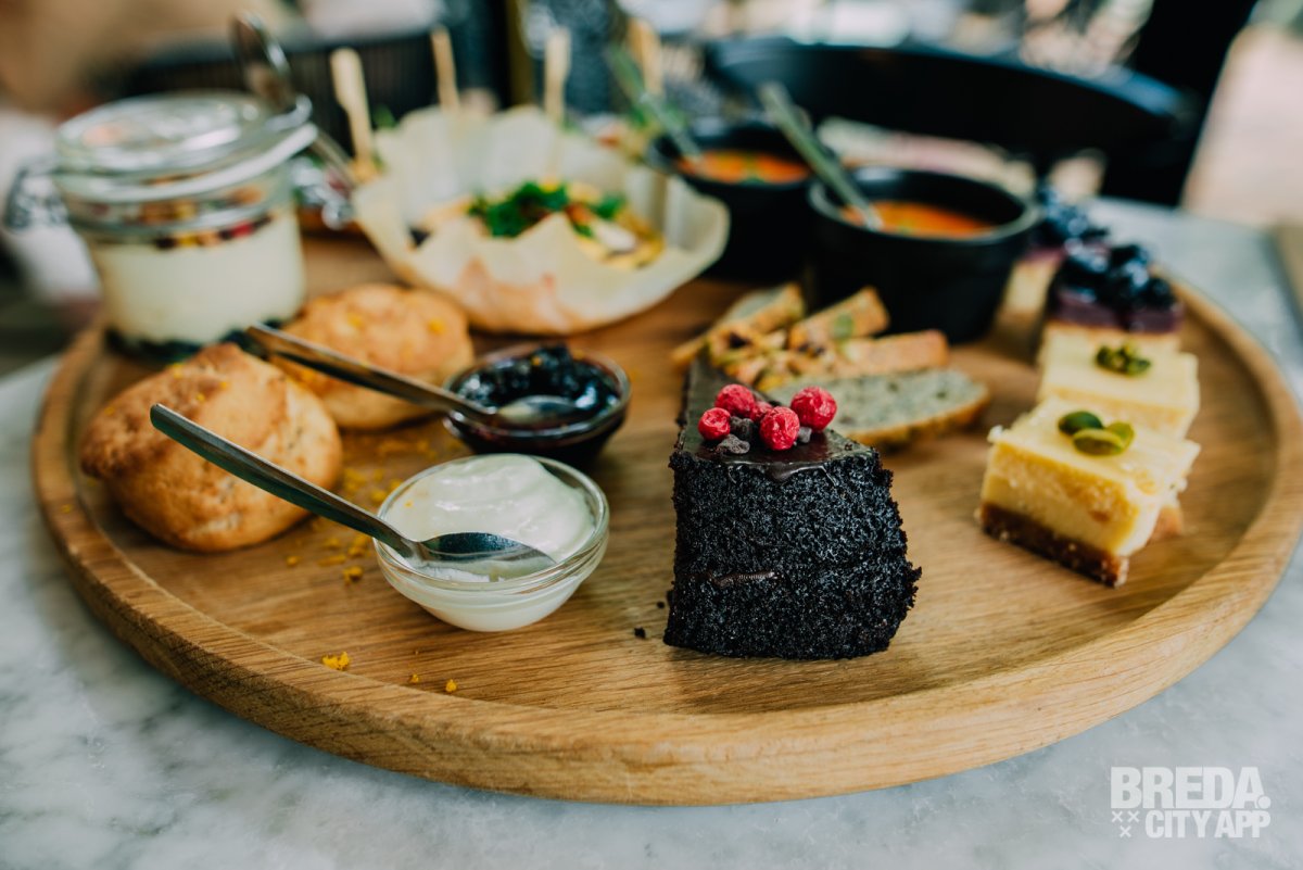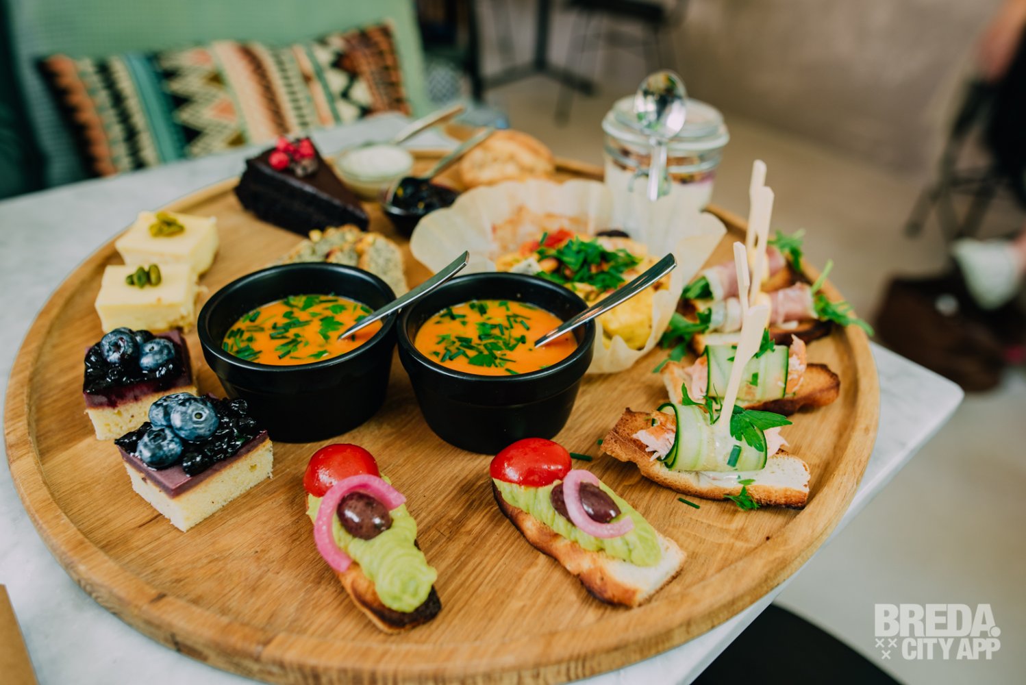 Terwijl het eten voor onze high tea wordt bereid, komen eigenaren Wouter en Emiel gezellig even kennismaken en het concept van Anne & Max verder toelichten. Niet snel daarna zien we het enorme plateau onze kant op komen. Alleen al de geuren zijn echt super lekker!