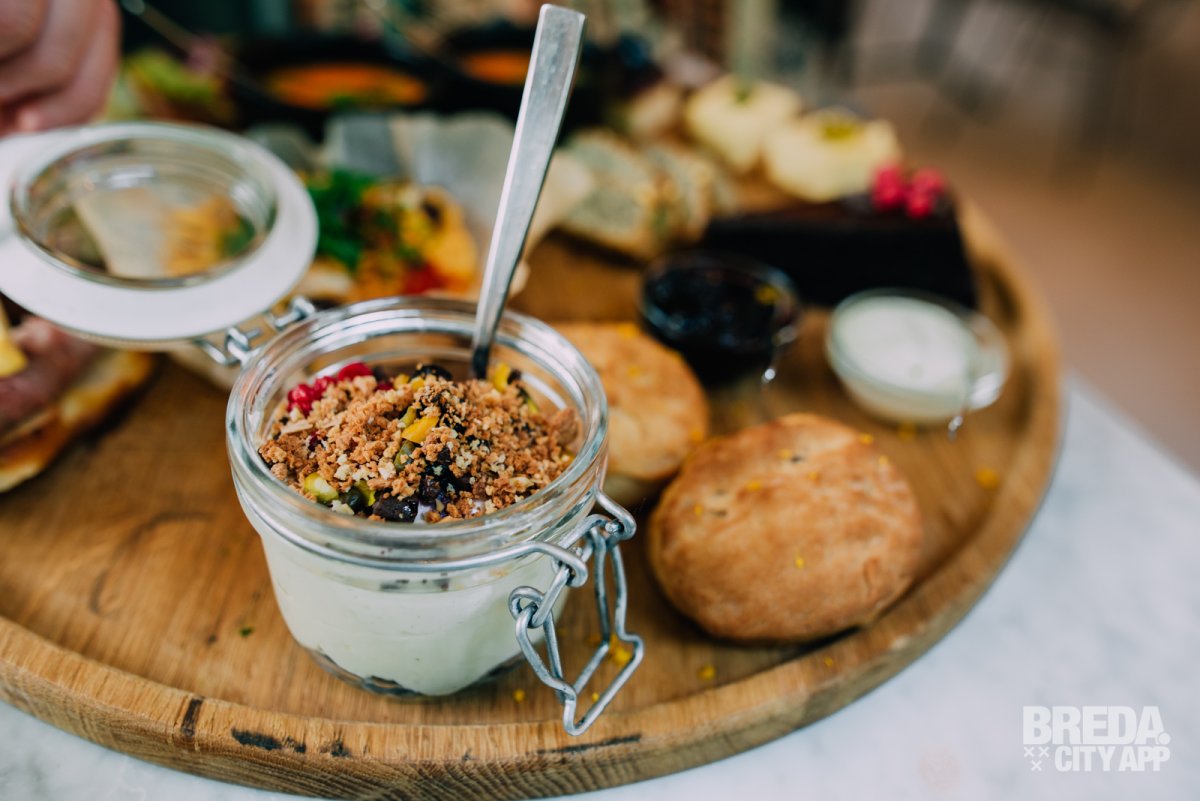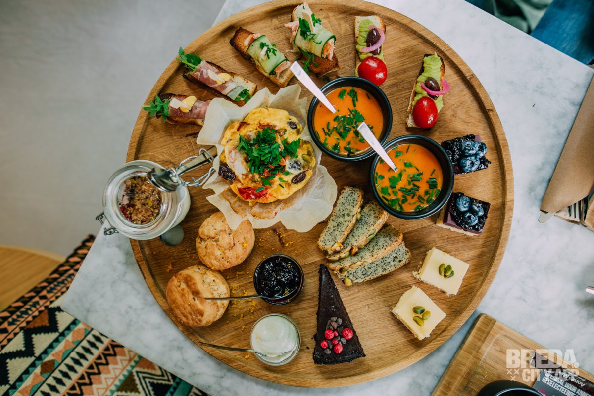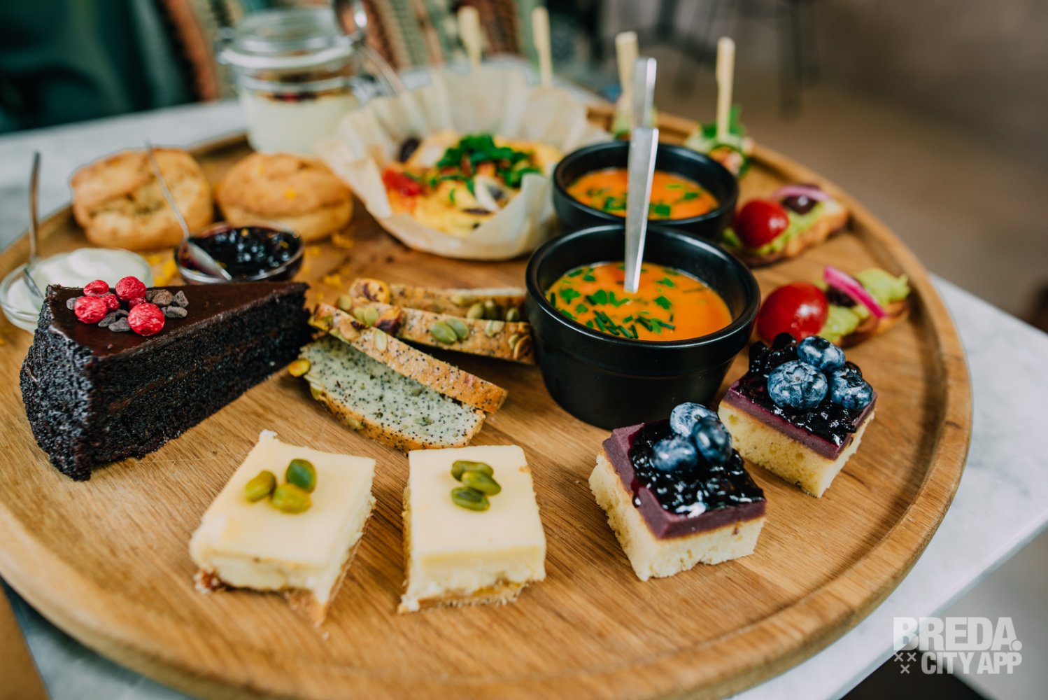 Terwijl het eten voor onze high tea wordt bereid, komen eigenaren Wouter en Emiel gezellig even kennismaken en het concept van Anne & Max verder toelichten. Niet snel daarna zien we het enorme plateau onze kant op komen. Alleen al de geuren zijn echt super lekker!