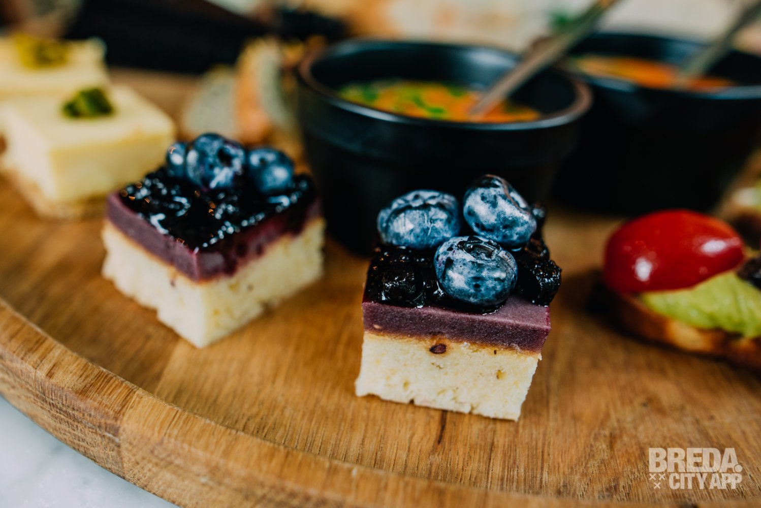 Hierna proeven we het glutenvrije zomerfruit taartje, belegd met blauwe bessen. Zowel het fruit als de cake is lekker zacht. Je proeft dat het zelfgemaakt én erg vers is. Ook de citroen pistache taart bevalt goed. Het lijkt qua smaak op cheesecake en is fris, zacht en romig. De pistache maakt het af en de bodem is heerlijk knapperig.