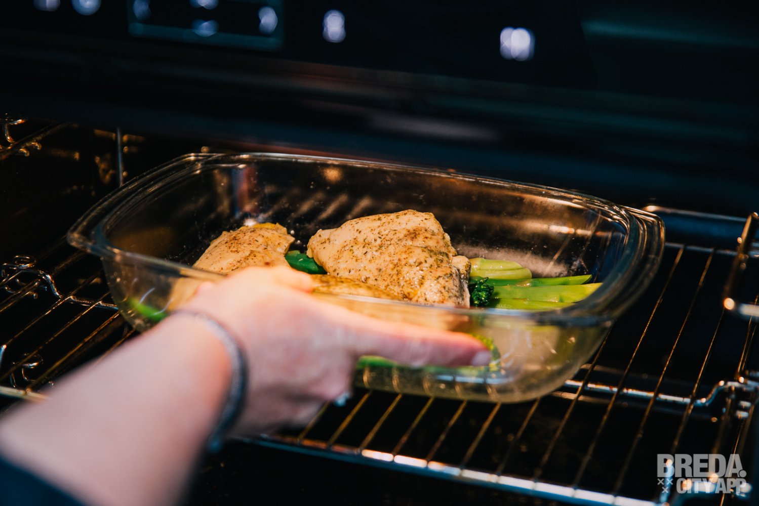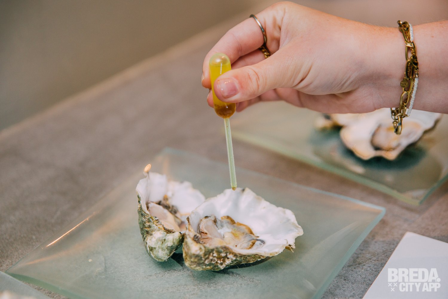 Onze Box arriveert stipt op tijd en nieuwsgierig openen we de doos bomvol goed verpakte ingrediënten, een mooie fles rosé en een duidelijke handleiding. Terwijl de oven aan staat voor het brood gaan we aan de slag met de eerste gang: kraakverse oesters geserveerd met een huisgemaakte Aziatische olie. De Aziatische olie met een rood pepertje geven de oester een pittige bite. Een veelbelovend begin voor een wondermooie avond..