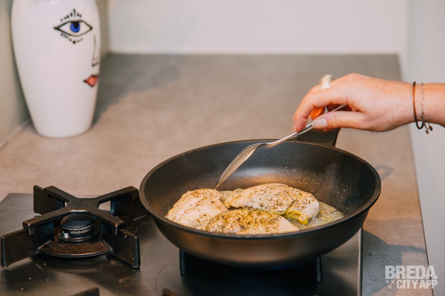 De tafel is gedekt, de kaarsjes branden en onze favoriete Playlist staat op. Met de open haard aan en een regenbui in het vooruitzicht zien we al de eerste voordelen van thuisdineren; we hoeven de deur vanavond niet meer uit. Je hoeft geen oppas te regelen en niemand is de bob. Relaxed! Nadat we iets leuks aan hebben aangetrokken, het blijft natuurlijk wel een uitje, schenken we onszelf alvast een aperitiefje in.