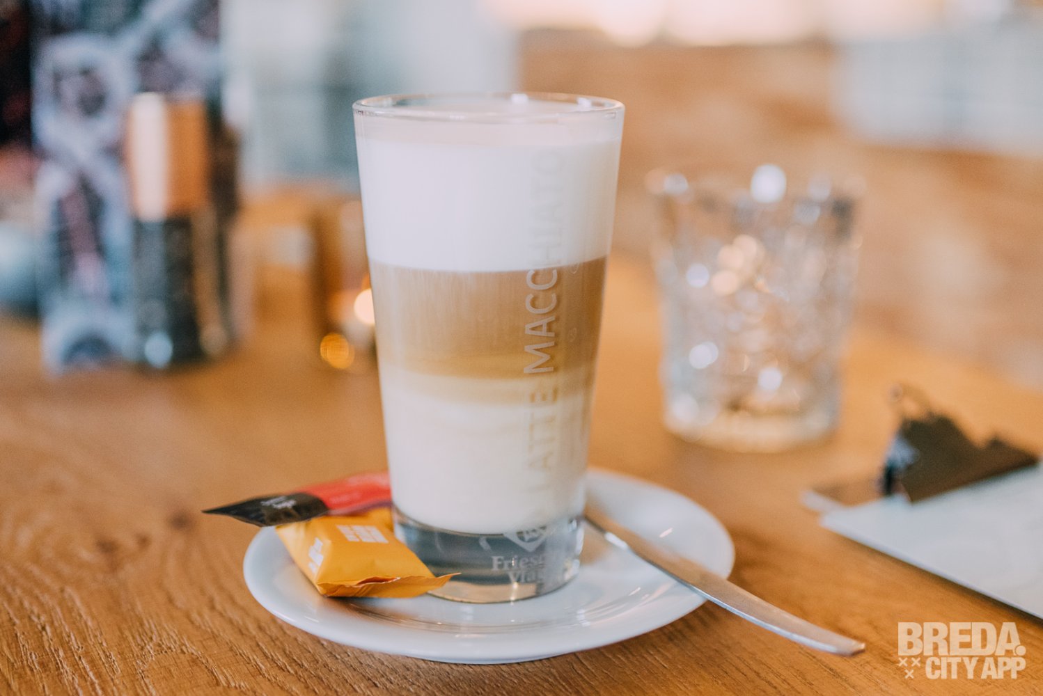 We besluiten om voor een Spa rood en een latte macchiato te gaan. Wat leuk om te merken hoe hier met de studenten om wordt gegaan en om te zien dat ze hier echt dingen leren! Zo wordt hen bijvoorbeeld vertelt hoe ze de suiker moeten leggen en dat het belangrijk is om de merknamen naar boven te leggen op het schoteltje.