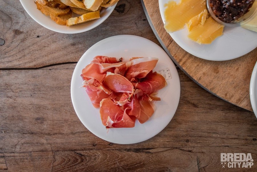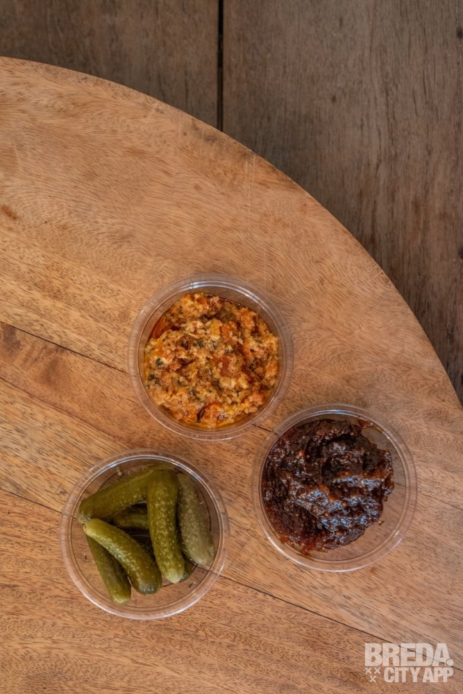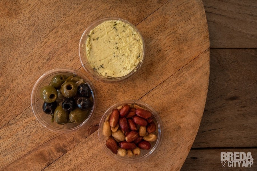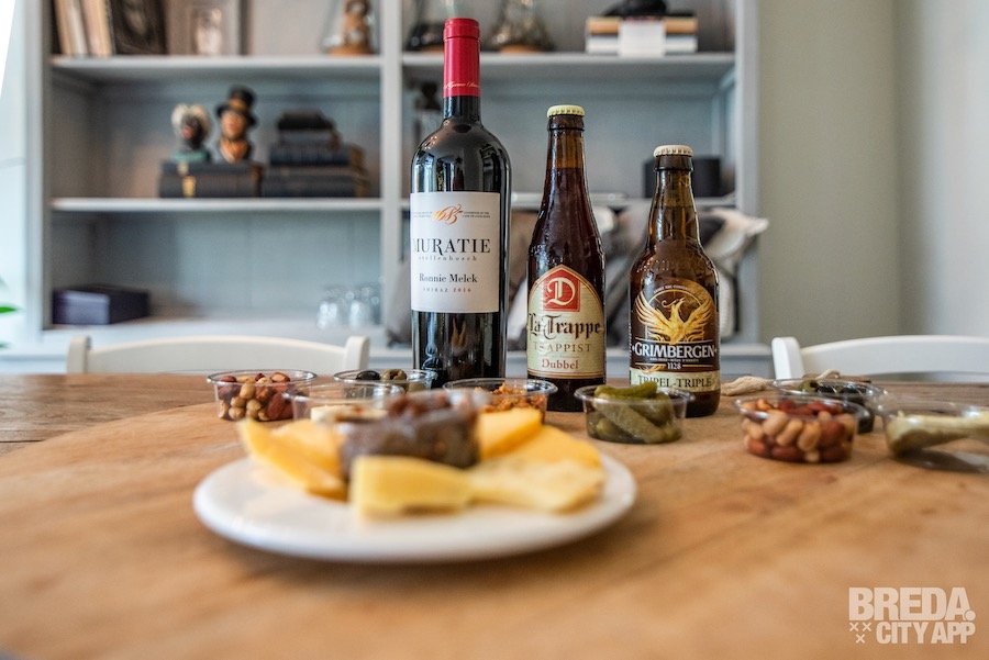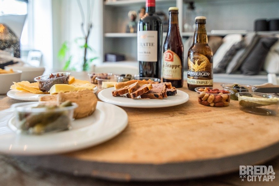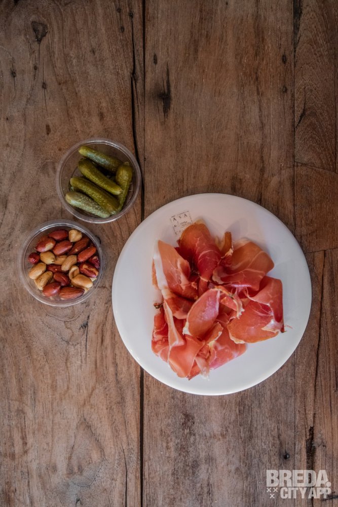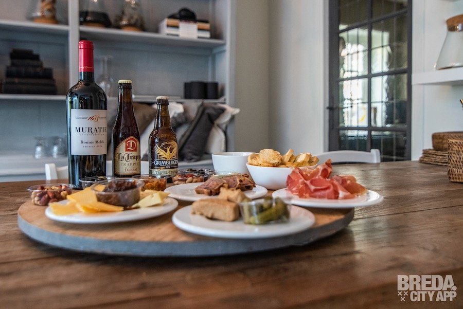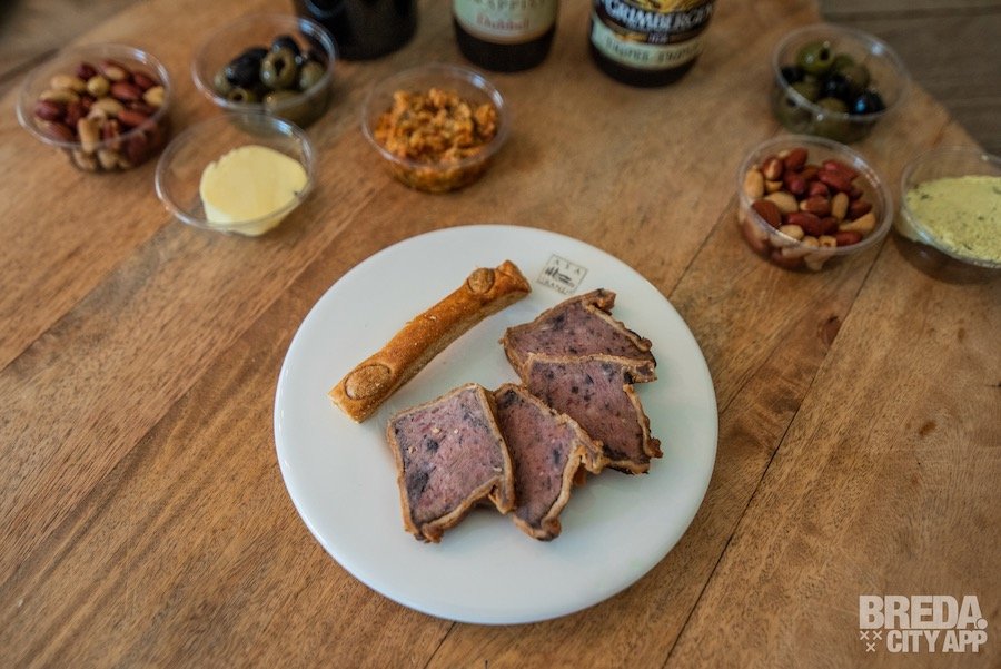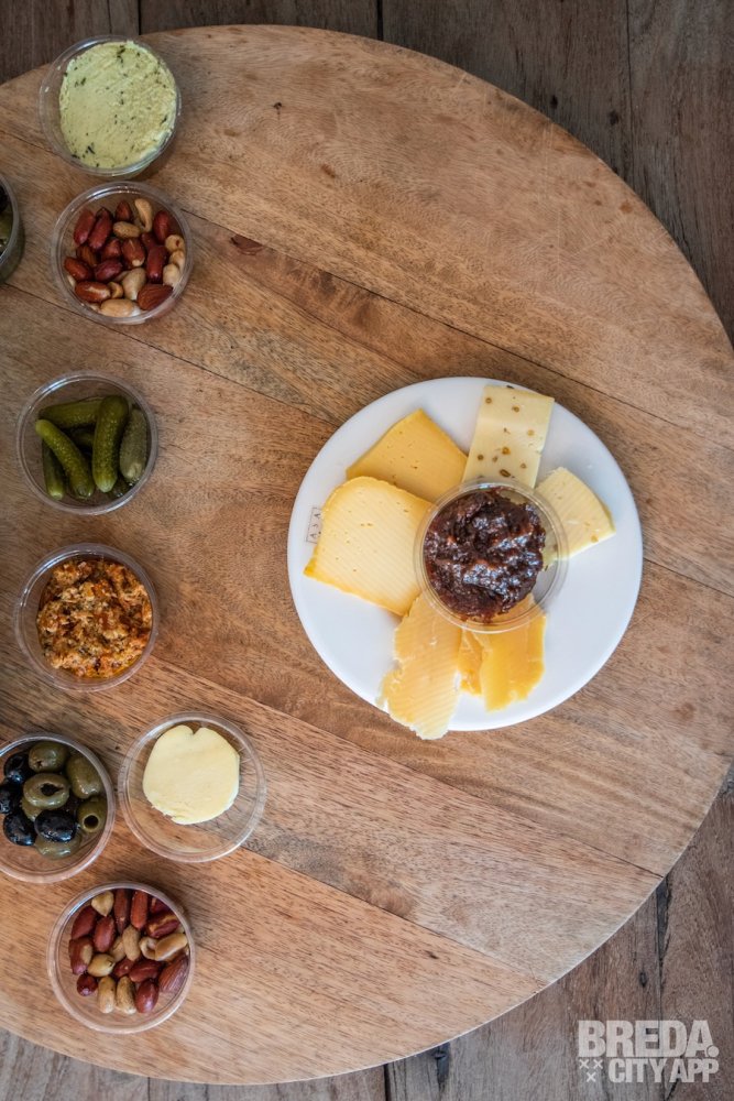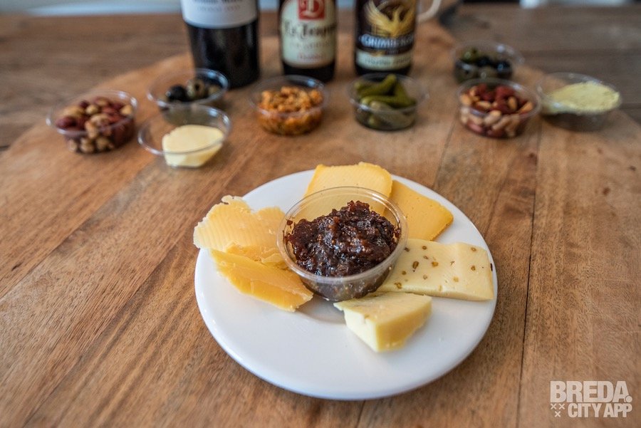 Een borrelplank zonder kaas is als een restaurant zonder menukaart; onmisbaar! Zeker voor Bredase Bourgondiërs als wij. In de borrelbox vinden wij drie heerlijke kazen. De eerste die we proeven is eigenlijk gelijk favoriet; een oude brokkelkaas met zoutkristalletjes. Ook komen we een milde Abdijkaas en een jonge, zachte fenegriek kaas tegen. De kazen zijn heerlijk in combinatie met de meegeleverde huisgemaakte vijgen- appelcompote.