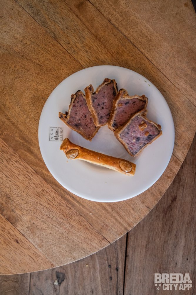 Ook de paté is hemels. De buitenkant van de paté is gemaakt van bladerdeeg en zorgt voor een klein knappertje. We kunnen niet precies plaatsen van welk soort vlees de paté gemaakt is, maar we gokken op wild! Tip: combineer de paté met de huisgemaakte vijgen- appelcompote op een canapé!