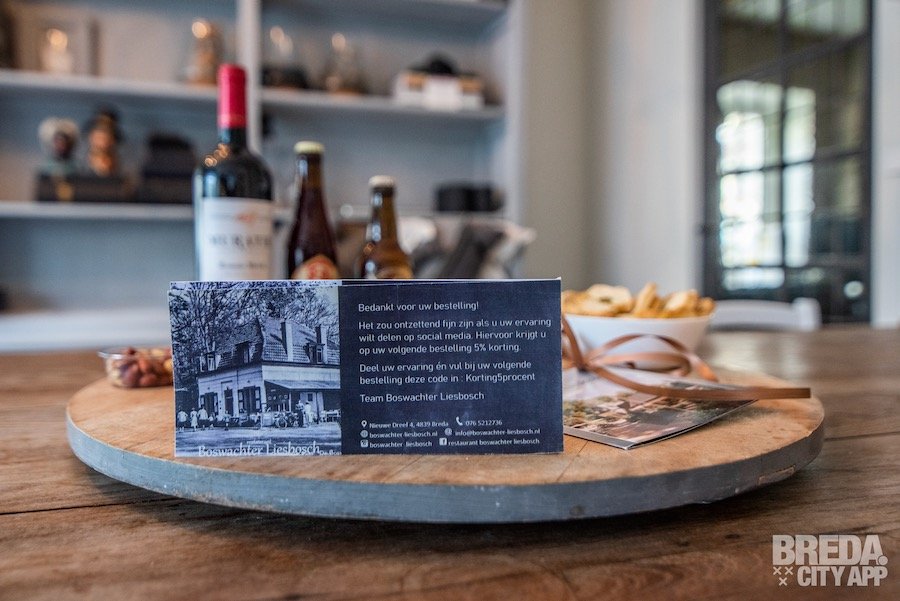 Naast de borrelbox (2 pax) biedt Restaurant Liesbosch een selectie mooie wijnen, een huisgemaakt 3-gangen menu én verschillende cadeaubonnen aan die van donderdag tot en met zondag besteld kunnen worden. Iedere bestelling vanaf €30 kan binnen een straal van 10 kilometer tegen een tarief van €3,50 bezorgd worden. Liever afhalen? Dat kan natuurlijk ook! Lees hier meer.