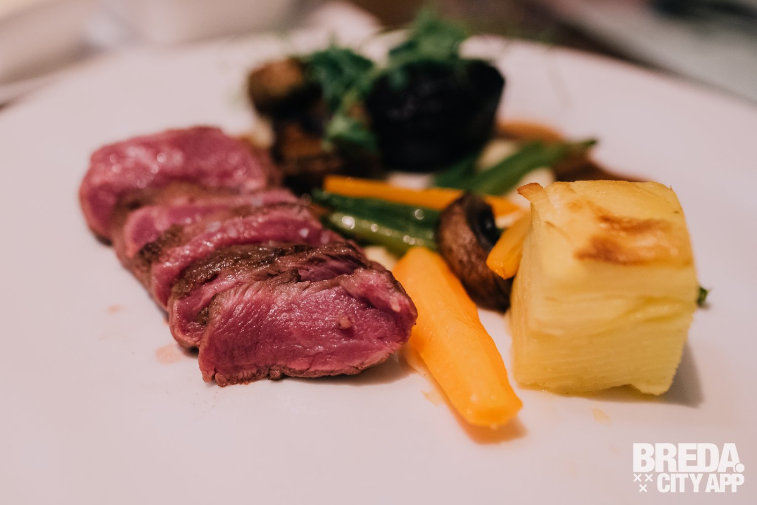 Voor ons was een hoogtepunt van het menu de Flat Iron Steak, geserveerd met crème van pastinaak, morillesaus, aardappel gratin, bospeen en gekarameliseerde ui. De steak was perfect gegaard en werd gecomplimenteerd door alle smaken op het bord. De aroma's van bramen en bosbessen, samen met strakke tannines en een lange afdronk van de Brunelly Syrah Grenache Carignan uit de Rhone, Frankrijk, was het geheel een indrukwekkende wijn-spijscombinatie.