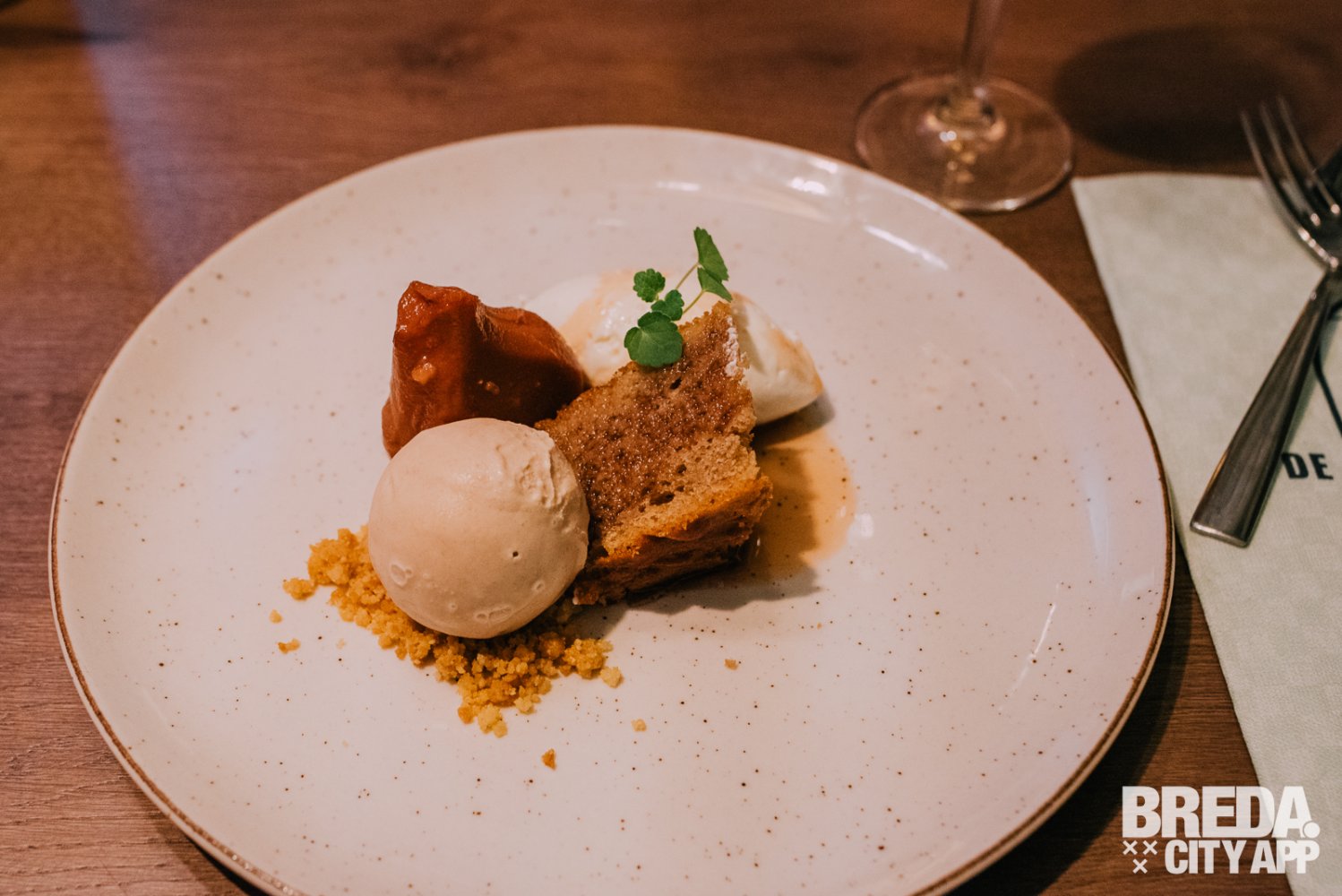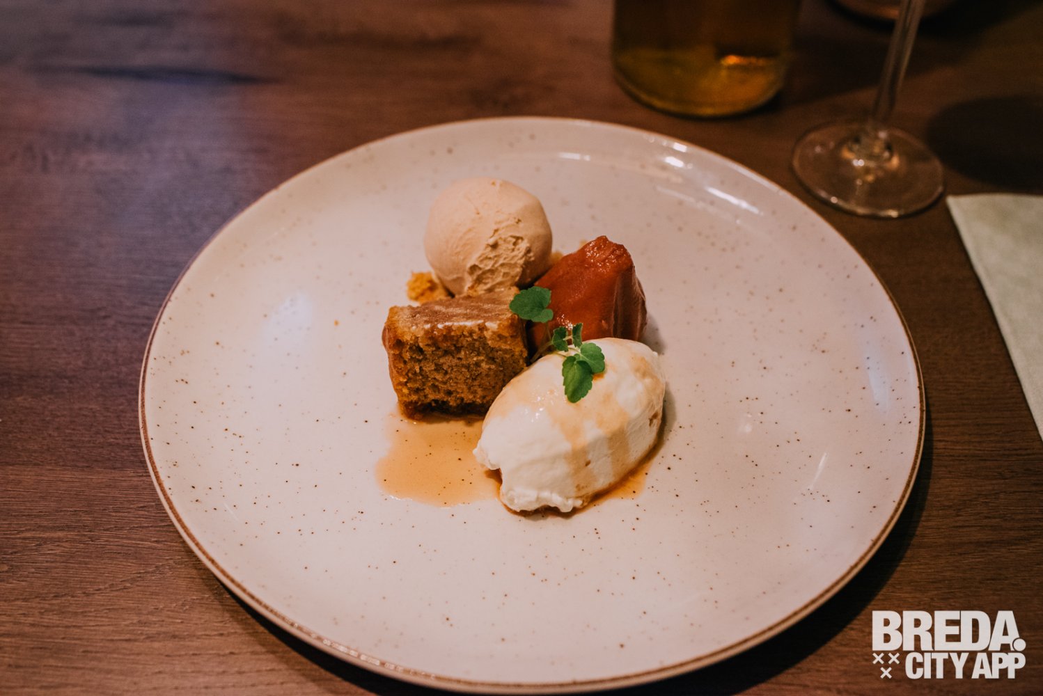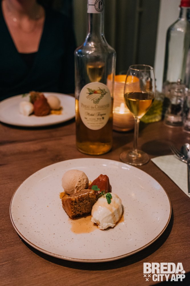 We sluiten de avond af met een heerlijk dessert - Chai Cake & Stoofpeer. Klinkt ‘simpel’ maar in tegendeel! De witte chocolademousse, huisgemaakte Chai cake en krachtig smakende stoofpeer geeft een herfstachtige afsluiting aan de avond. Het gerecht wordt vergezeld door een zalige Michel Forgeron Pineau de Charentes uit de Charente, Frankrijk. Dit alcoholische drankje, gemaakt uit het restproduct van cognac, biedt een zoete dessertwijnervaring met frisse tinten van vanille, nootachtigheid, wit fruit, rozijn en honing.
