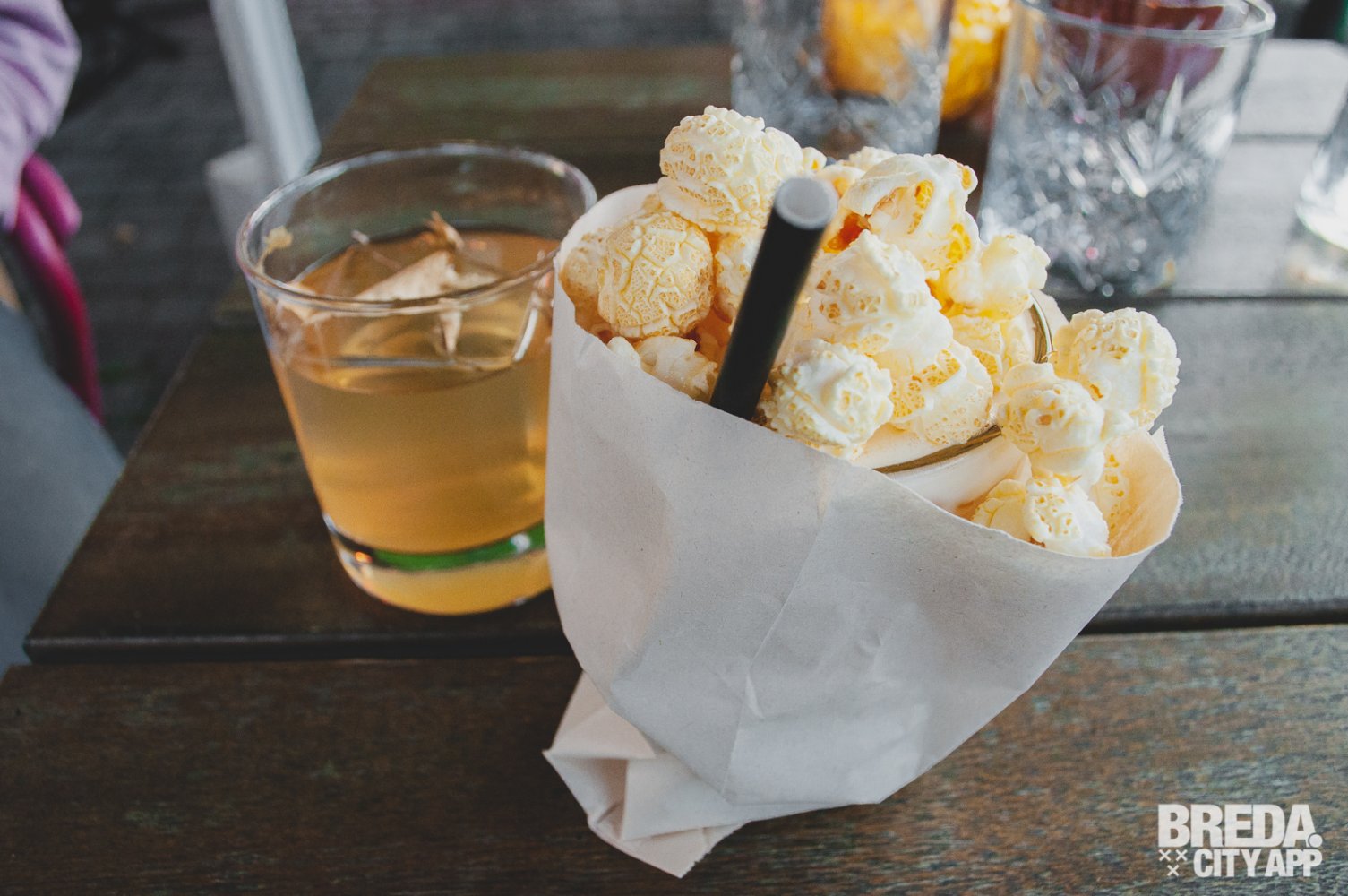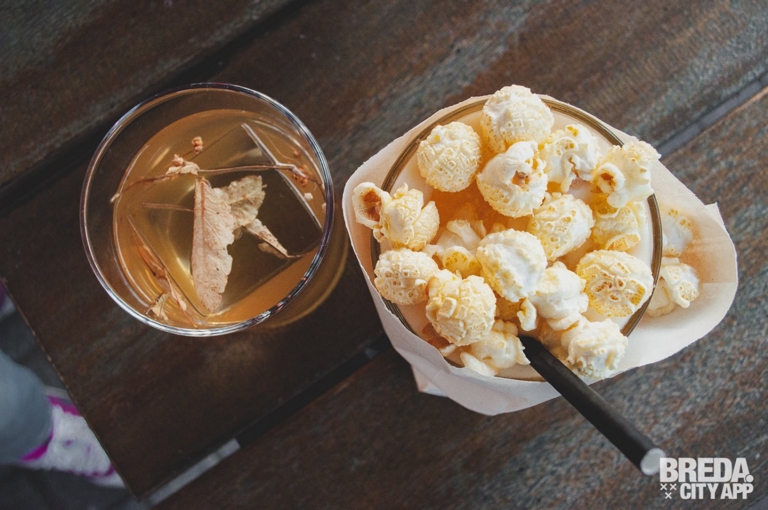 We sluiten af met de 'Fox Tale', een cocktail perfect voor whisky liefhebbers. De cocktail is een combinatie van chanterelle mushroom-infused whisky met honing siroop, citroen bitter en sandelhout bitter. De 'What’s Poppin' cocktail bestaat uit popcorn-infused wodka gecombineerd met een zoete Galliano likeur en zoute karamel siroop. Dit wordt gecombineerd met een eitje om het tot een romig geheel te maken. De cocktail ziet er fantastisch leuk uit en smaakt heerlijk.