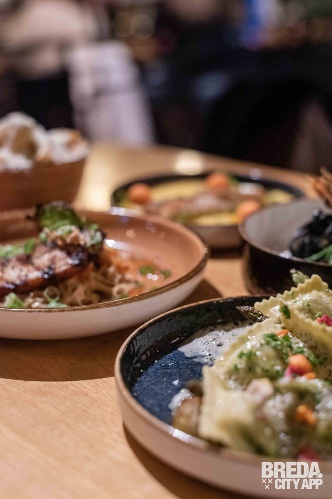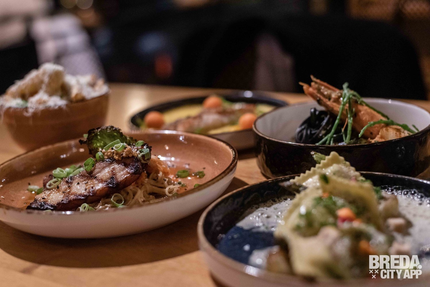 We gaan ook daarna verder met het delen van verschillende, verrassende gerechten. De tafel wordt gevuld met Pescado Rojo (roodbaarsfilet), zacht buikspek, 'Gamba el Nero die Sepia' en ravioli van ricotta. Een smaakvolle reis langs verschillende werelddelen, waar de Mediterraanse, Aziatische en Latijn-Amerikaanse sferen duidelijk naar voren komen.