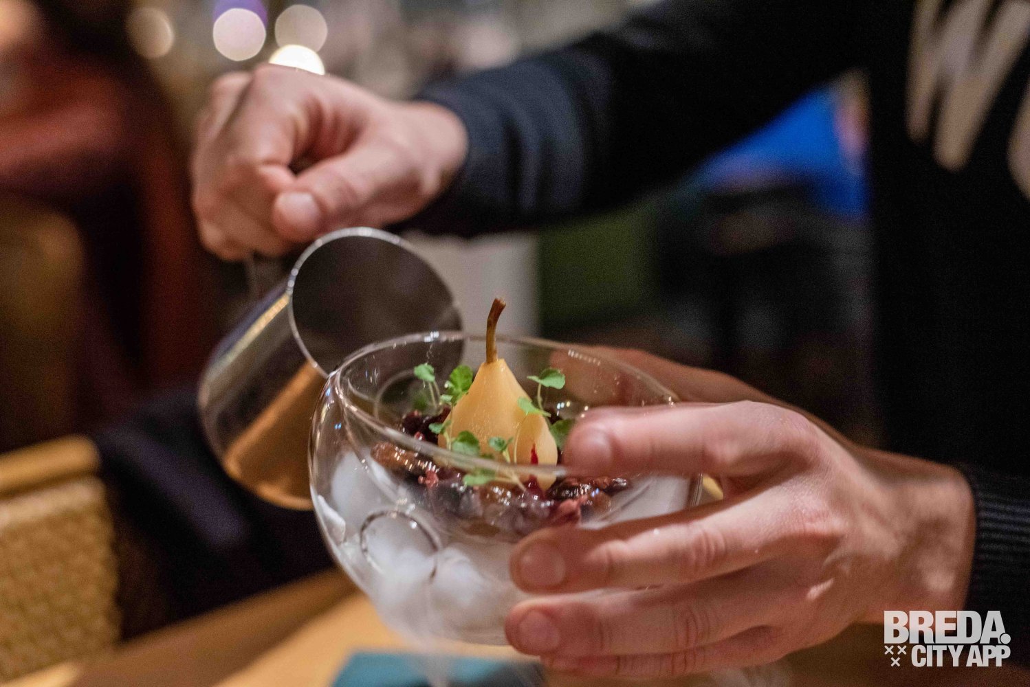 We merken beide op dat de menukaart een upgrade heeft gekregen omdat we nieuwe, verrassende gerechten op de kaart zien. De gastheer van de avond, Danjel, legt het menu aan tafel uit en we beginnen deze avond - hoe kan het ook anders bij de Botanist - met cocktails. De 'Botanist Mojito', gemaakt met The Botanist Gin en de 'Paloma', geshaket met tequila, agave siroop en grapefruit soda worden geserveerd! Deze heerlijke cocktails zetten meteen de toon voor onze avond.