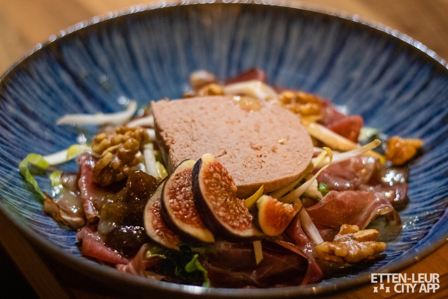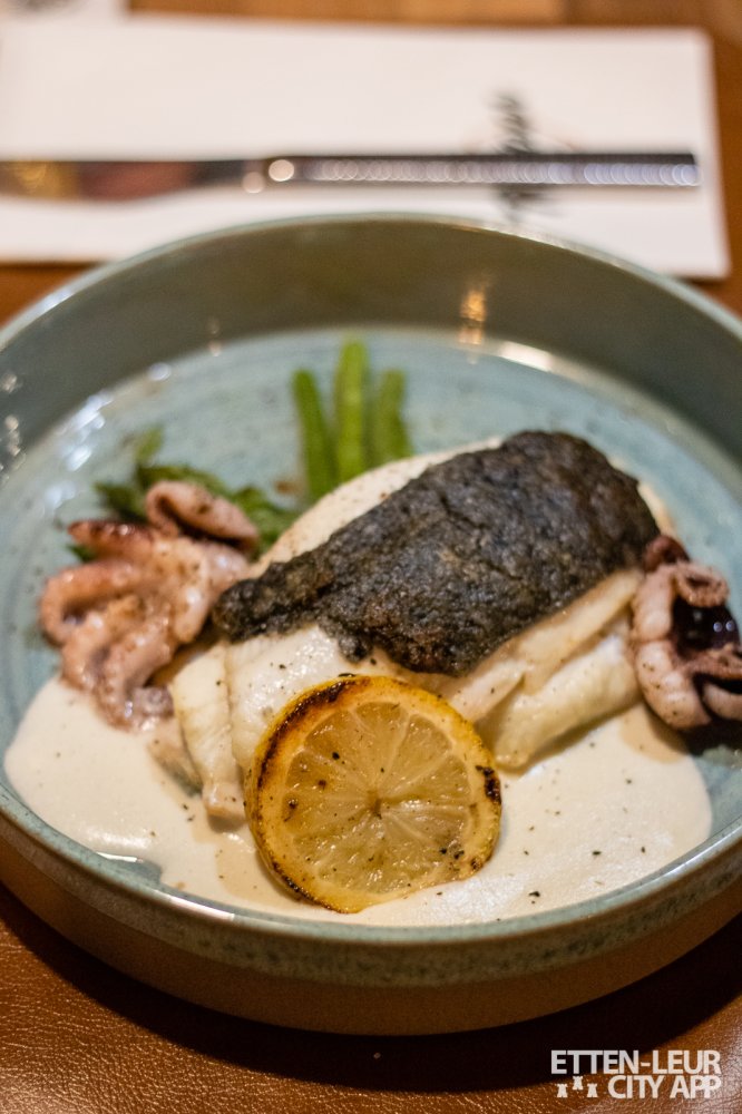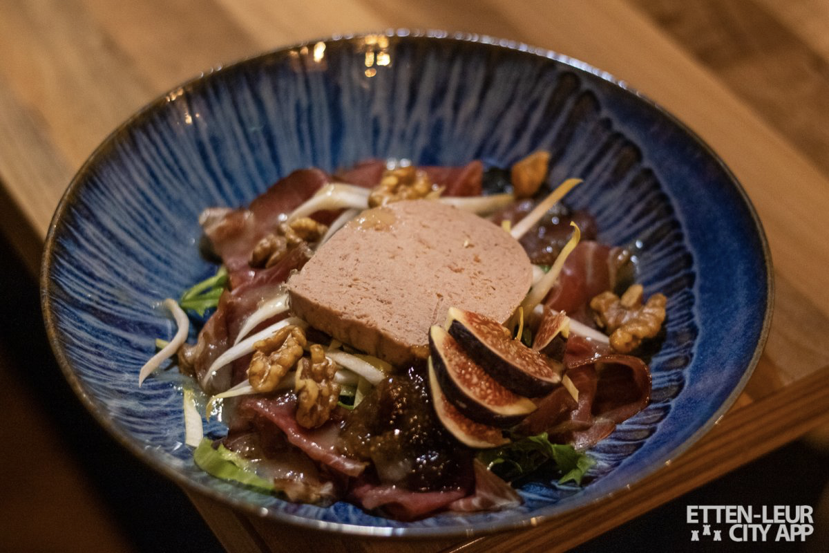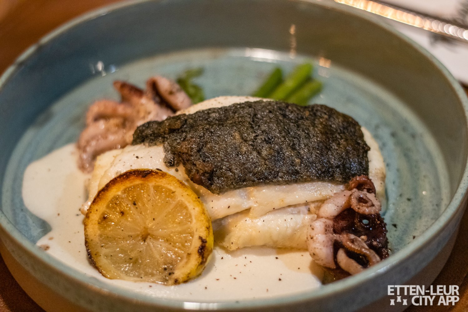 De steak tartaar brasserie-style en het voorgerecht van het wild menu: wild zwijn met eendenlever mousse, worden samen geserveerd. De steak tartaar was prima op temperatuur en we herkennen een subtiel vleugje honing. Wat een heerlijk gerecht is dit en terecht dat zij hier trots op zijn. De wildzwijn met eendenlever mousse is rijk aan smaken, de chutney van vijgen gaf het gerecht een zoete tint wat de smaken mooi bij elkaar brengt.