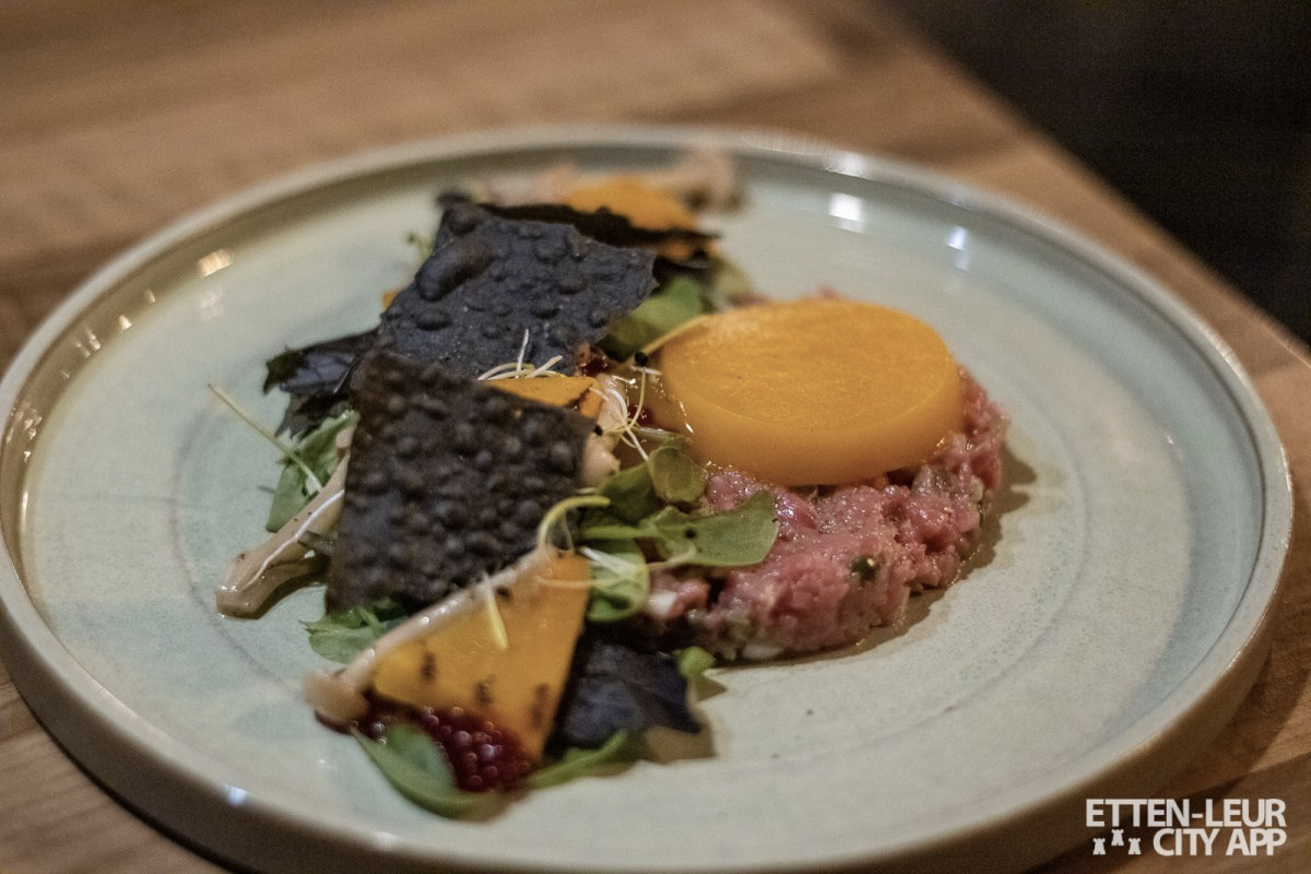 Brasserie Tartaar wordt gerund door Tara en haar ouders, Tara begeleidt ons naar de tafel en vertelt trots over de brasserie. Net voor de corona tijd zijn zij geopend, dus ze hebben al veel uitdagingen gekend op het horeca vlak.