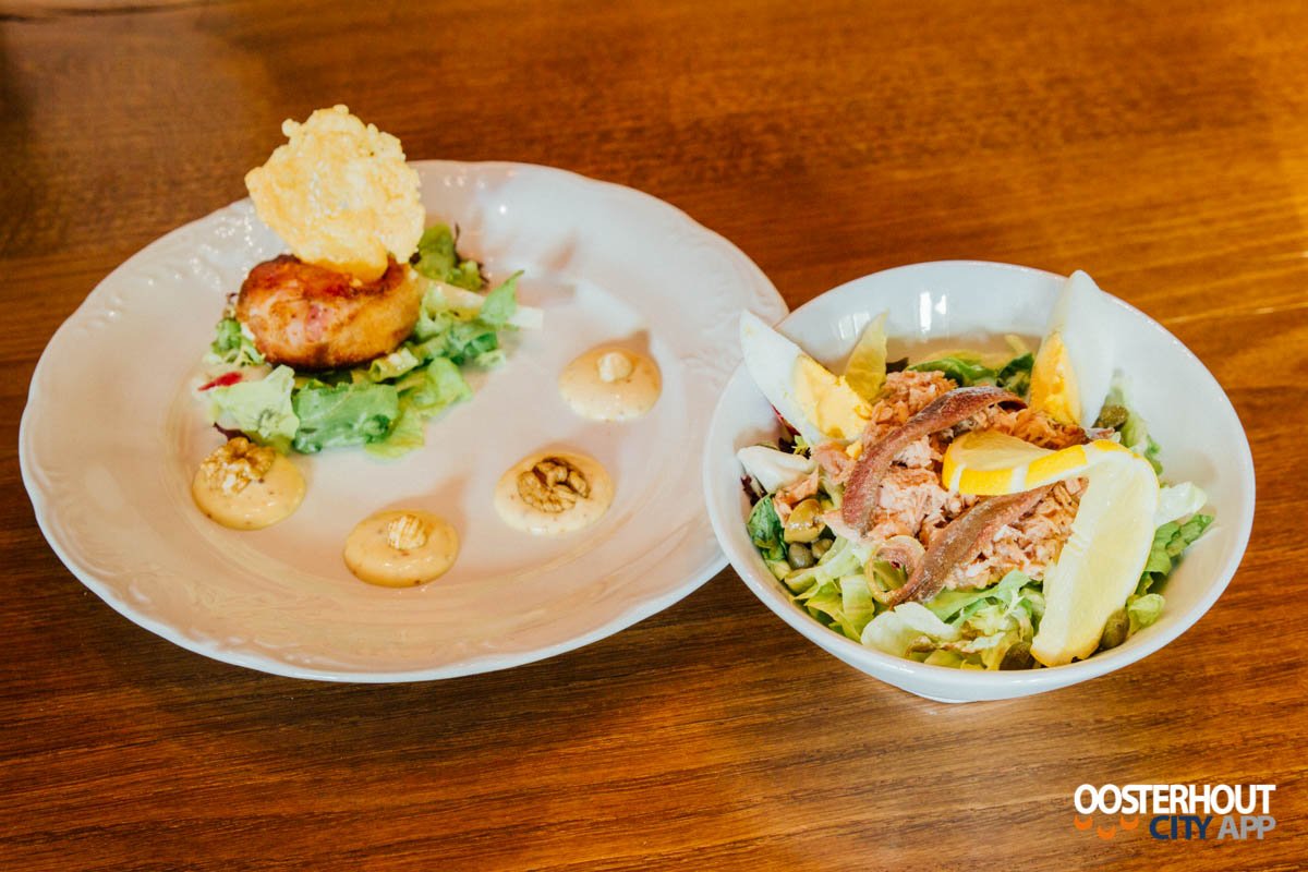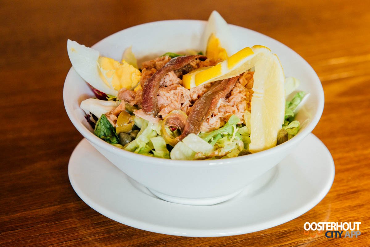 De friszure Sauvignon past ook weer goed bij onze tweede gang. Een frisse tonijnsalade die wordt opgediend met kappertjes, olijven, ei en ansjovis. Vrij basic maar met een goede dressing van limoen.