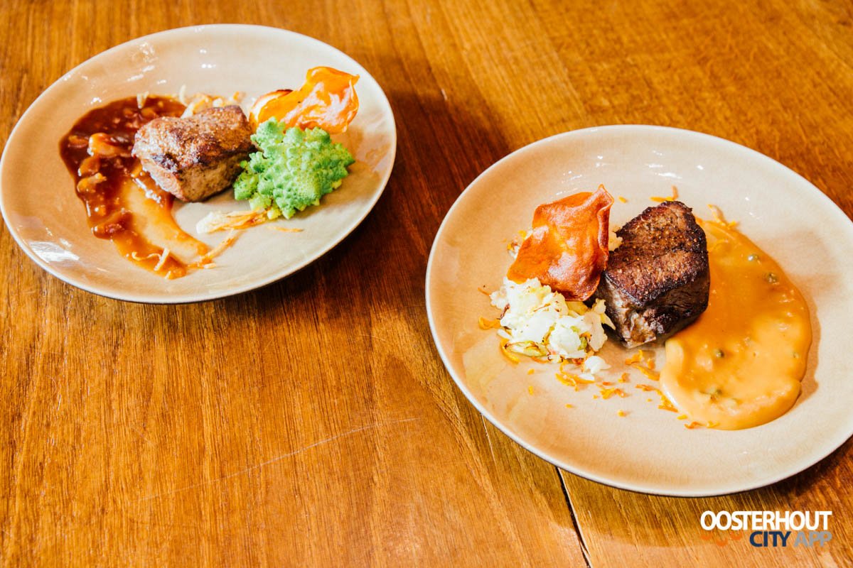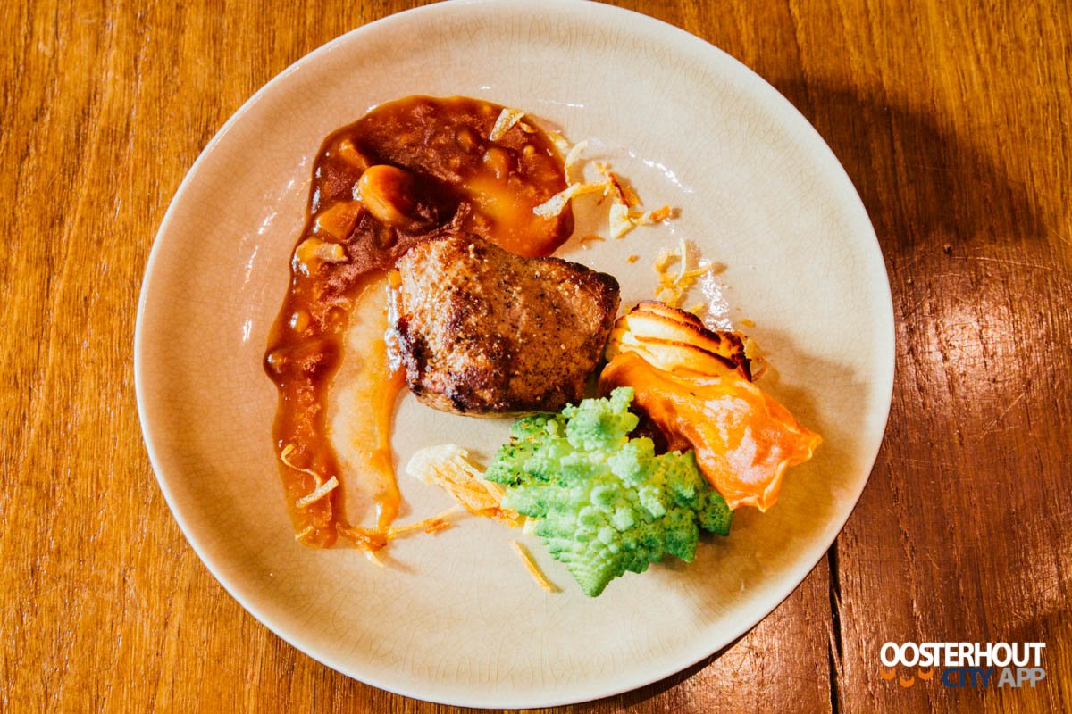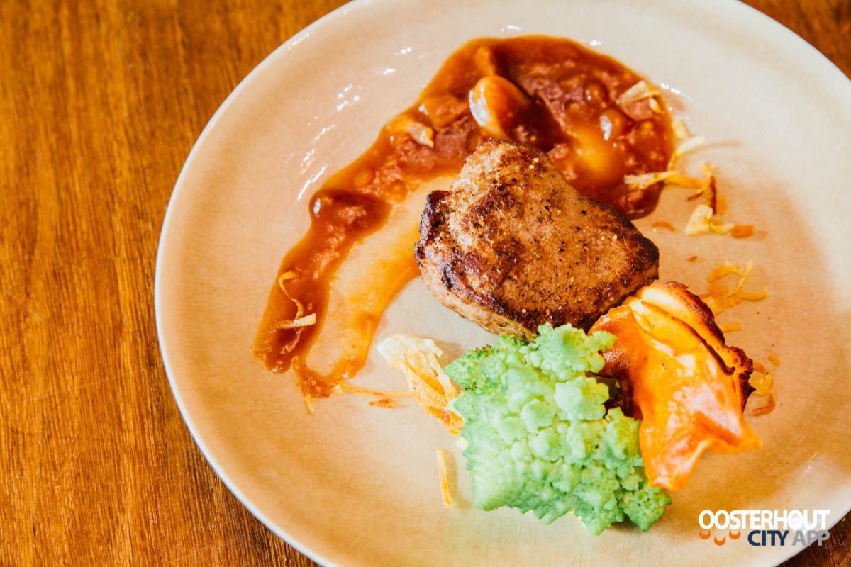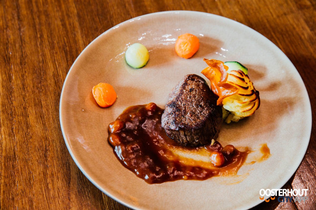 De tournedos is perfect gegaard en ook weer geserveerd met een heerlijke saus. Alle gerechten komen met diverse originele garneringen en verse groenten.