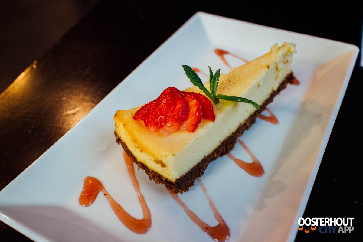 De cheesecake is romig, heeft een lekkere koekbodem en een topping van verse aardbei. Terwijl we nagenieten van dit heerlijke dessert, zien we buiten drie konijntjes in het bos achter elkaar aanrennen. Dit is dus het echte 'Woods gevoel'!