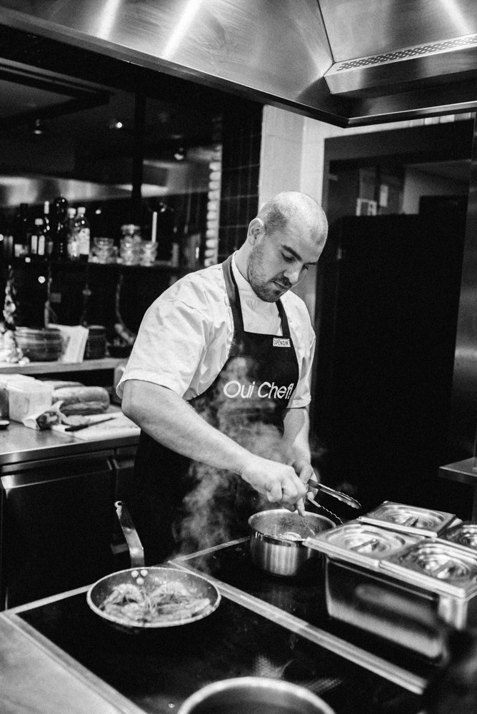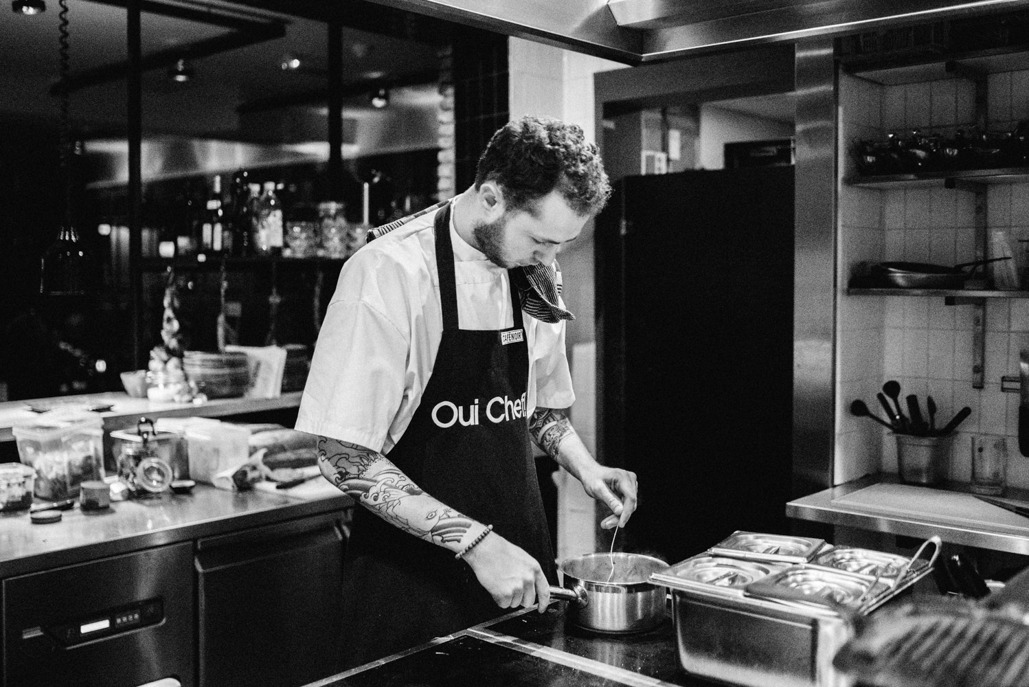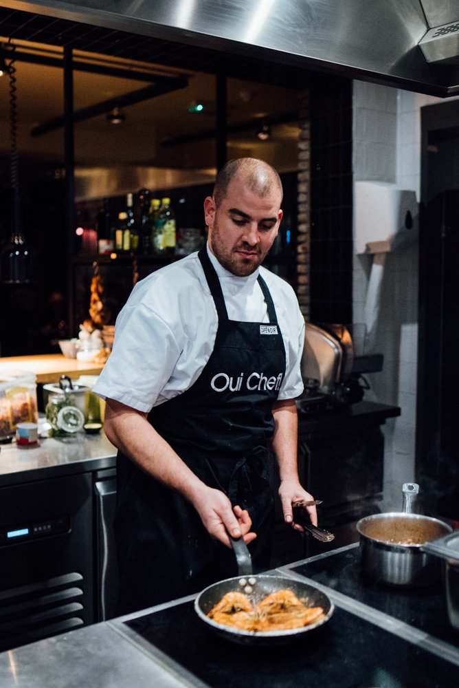 Vanuit ons tafeltje konden we recht in de open keuken kijken, waar de twee chefs onze gerechten aan het bereiden waren.