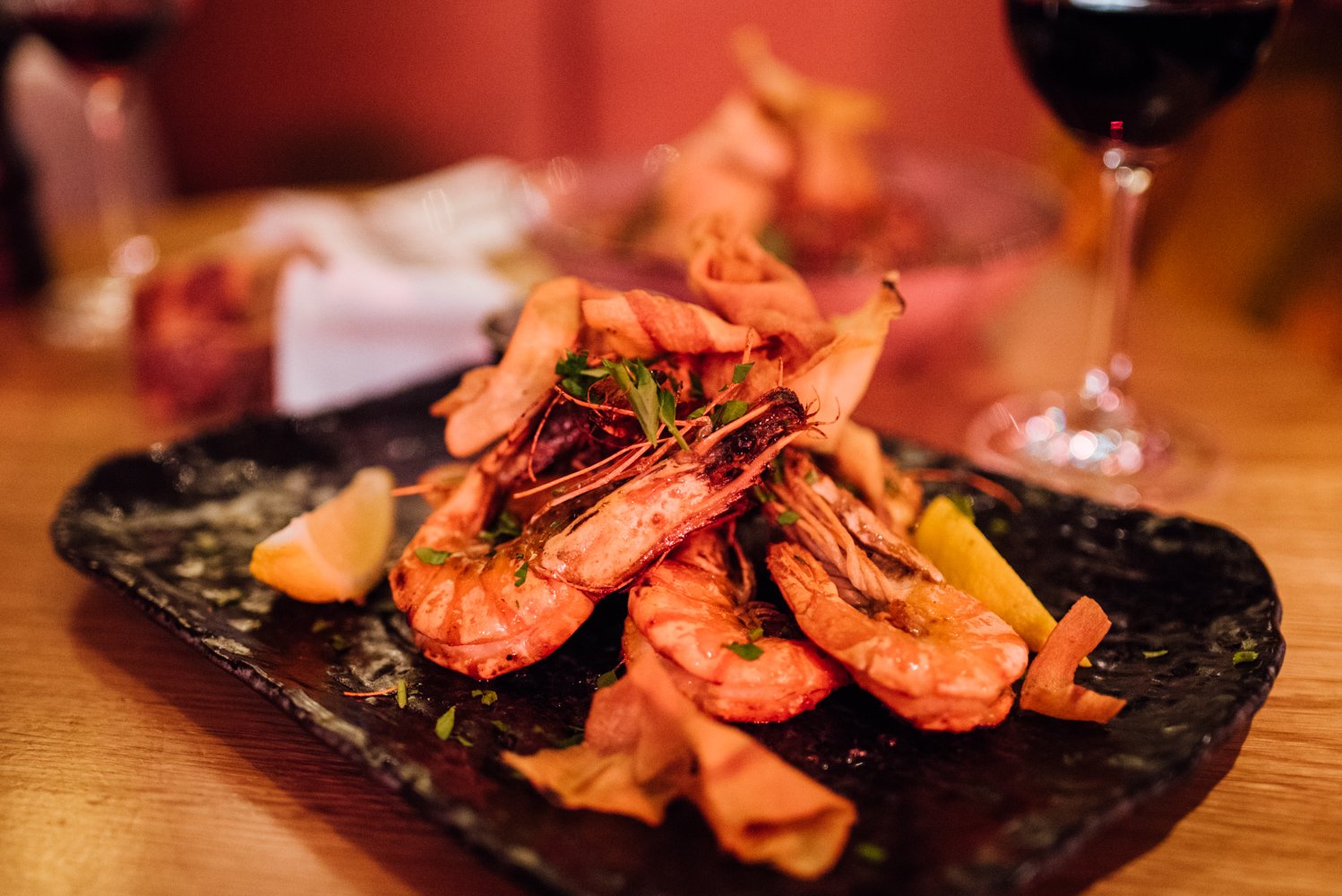 Als hoofdgerecht kozen we voor Coq au Vin & Gamba's. De drie gamba's werden op een mooi bord geserveerd met gerookte paprikacrème en een lekker krokantje. De gamba's waren mooi zacht en goed op smaak, een klein beetje citroen toevoegen en je likt je vingers erbij af.