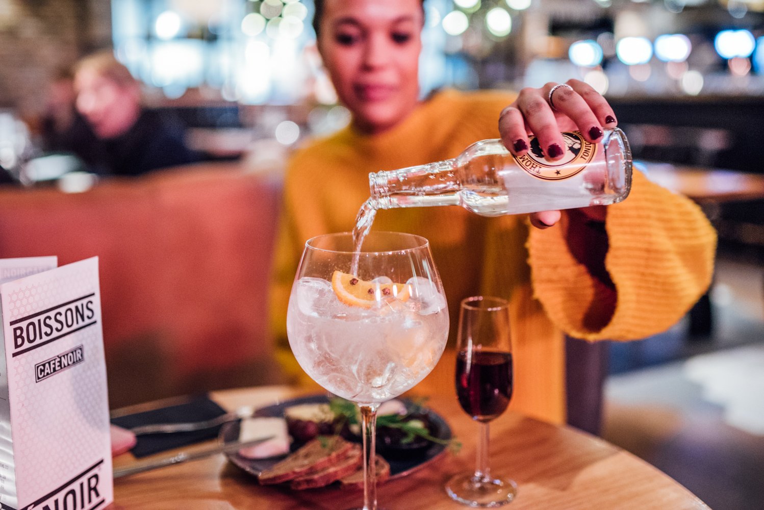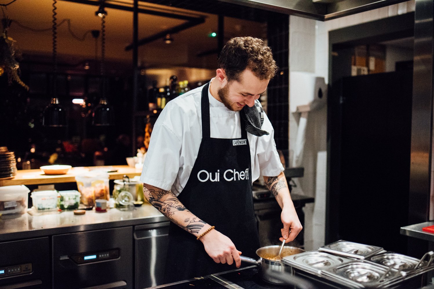 Als je Café Noir nog niet hebt gezien na de verbouwing moet je hier zeker een kijkje gaan nemen. De zaak heeft een prachtig interieur met Franse accenten, warme kleuren, een open keuken en een waanzinnig mooie middenbar.