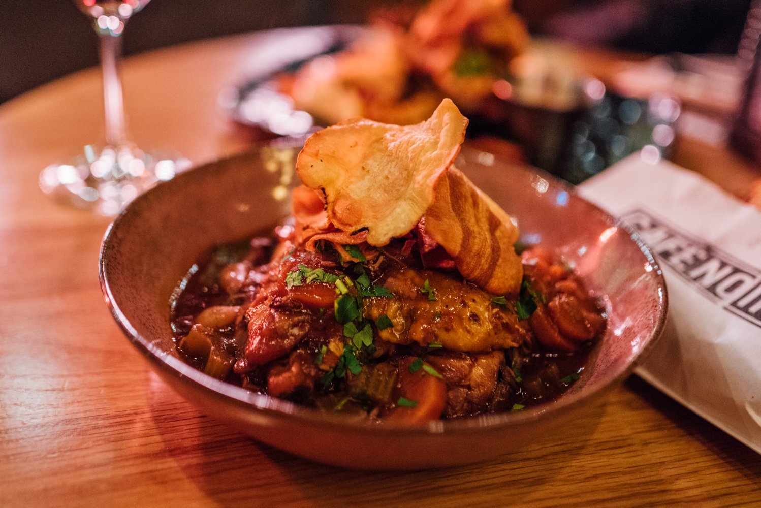 De klassieke Coq au Vin werd geserveerd met twee dikke sneetjes brood, heerlijk om in de saus te dippen. De kip was zo mals dat het vlees letterlijk van bot viel. Een heerlijke klassieker die je zeker een keer moet proberen.