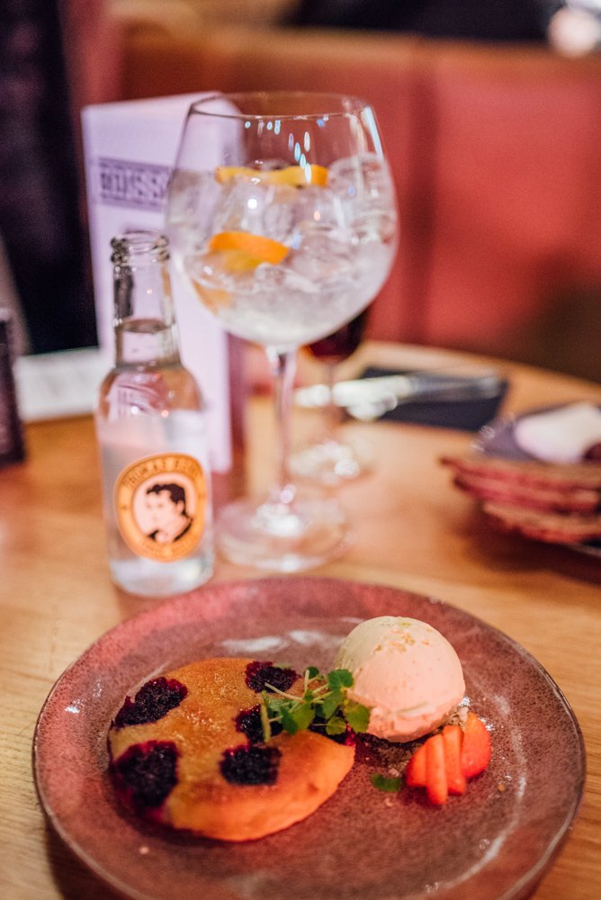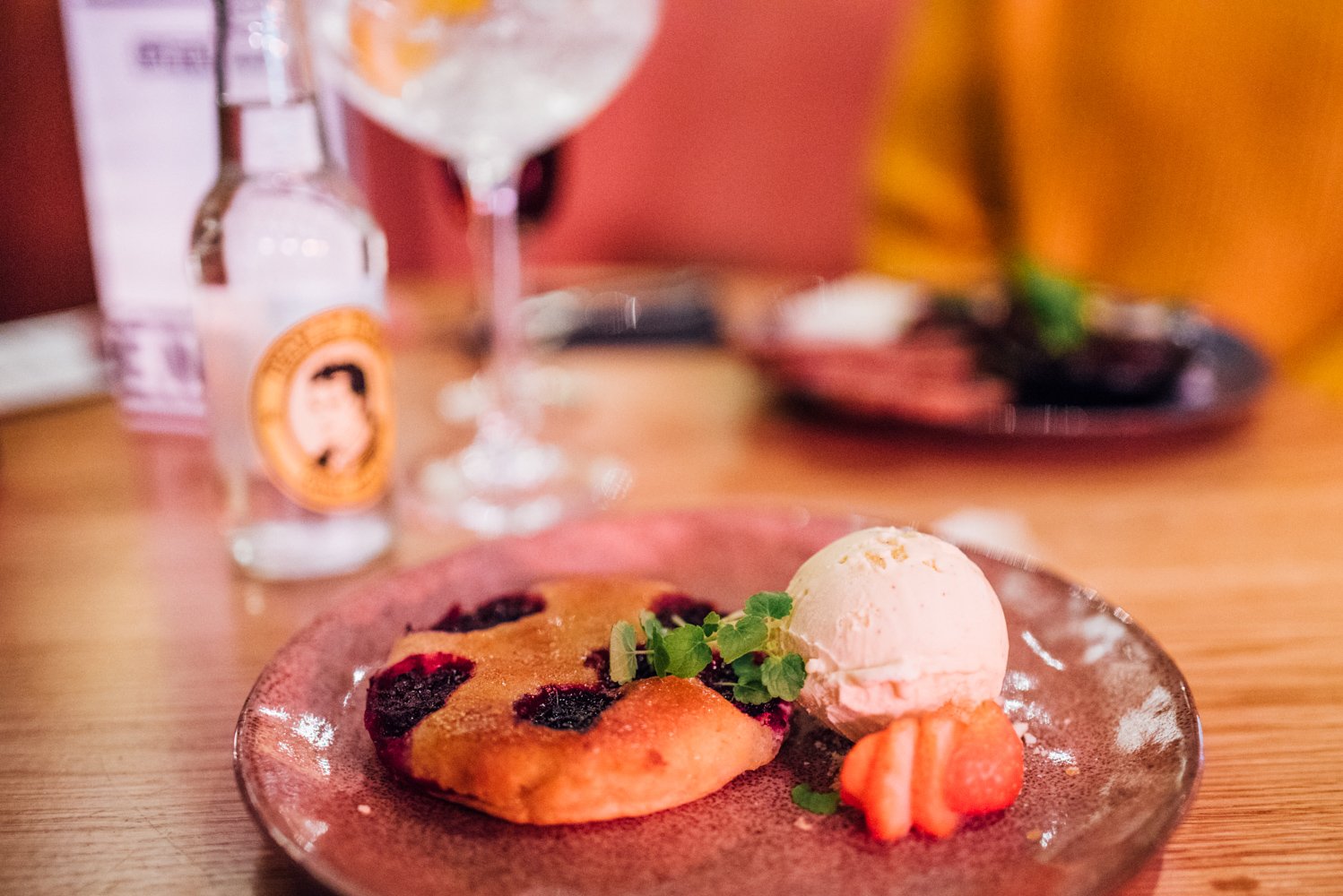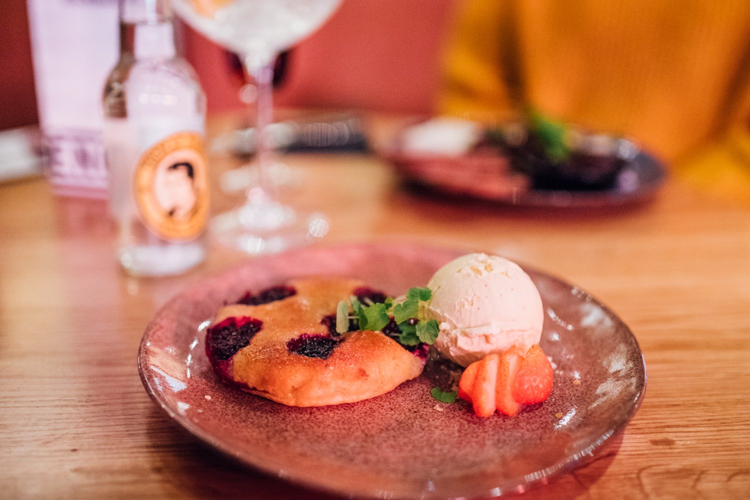 Tarte aux mûres is een luchtig bramentaartje met een bol vanille ijs. Een lekker zoete afsluiter van dit heerlijke diner.