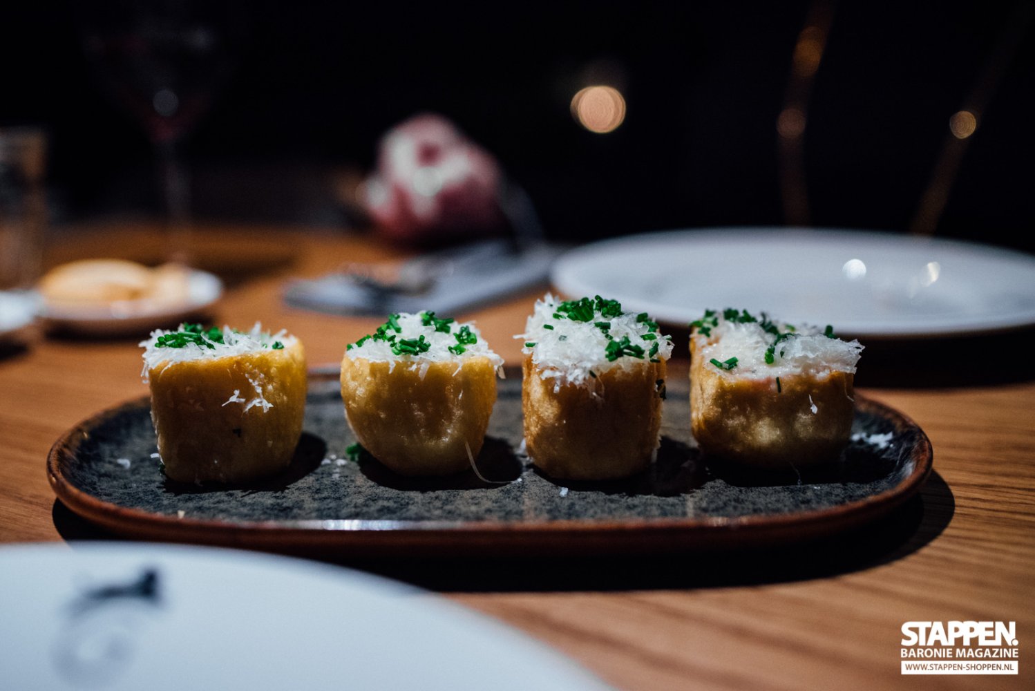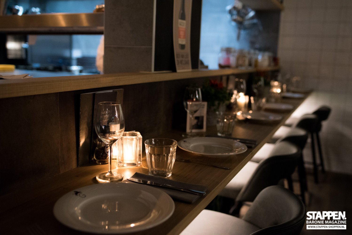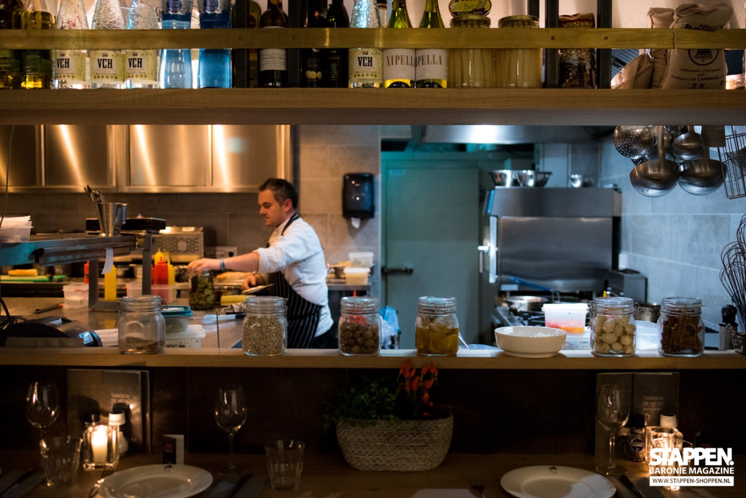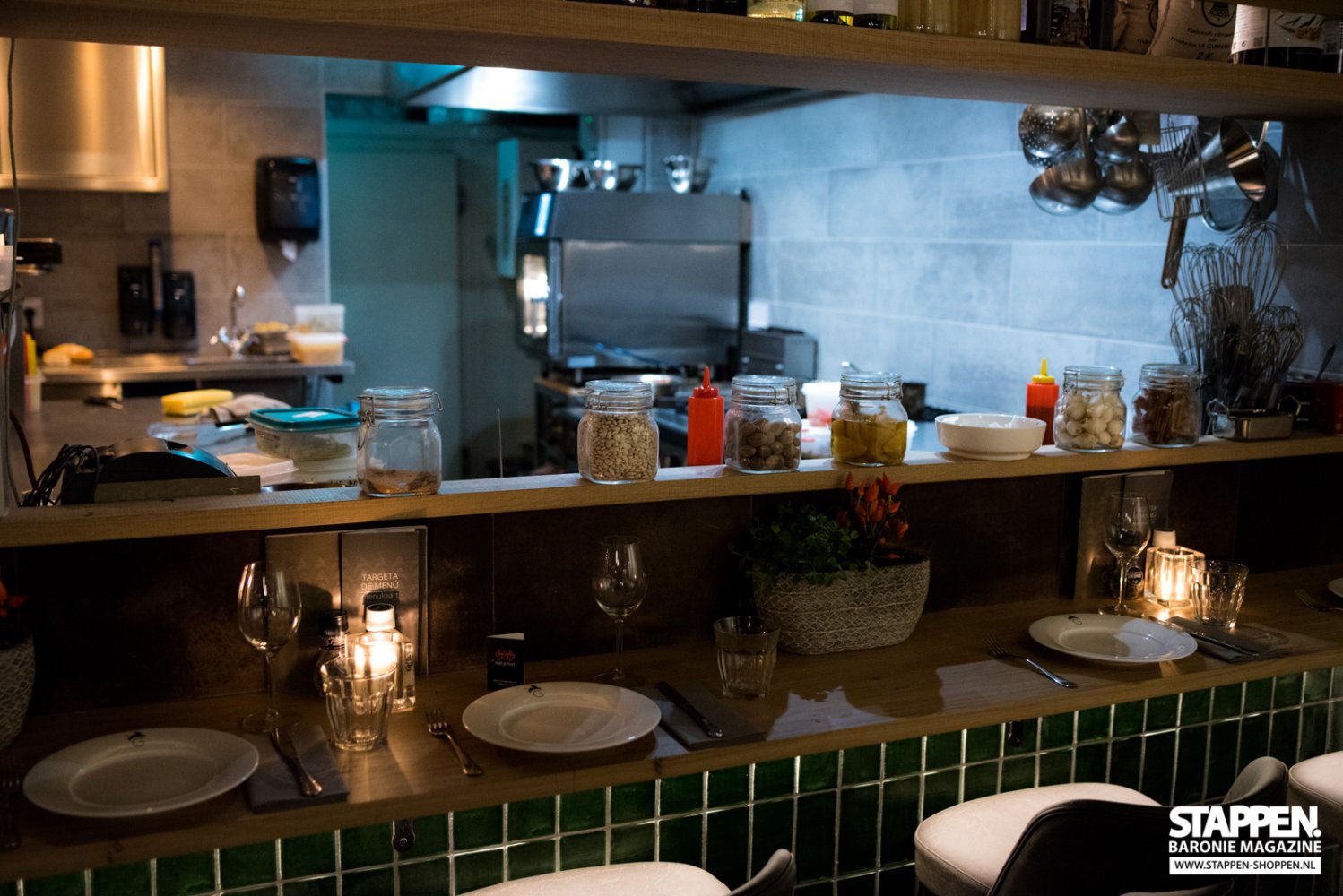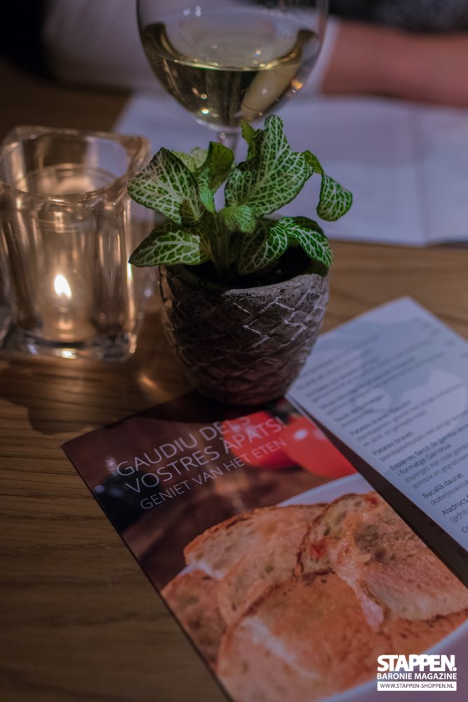 Direct bij binnenkomst worden we met een brede glimlach ontvangen en naar onze tafel begeleid door een vriendelijke medewerkster. De zaak is sfeervol en warm ingericht, de grote open keuken valt direct op en is een echte eyecatcher. De vriendelijke dame vertelt ons uitgebreid over het concept, de menukaart en de gerechten. Terwijl ze de tijd neemt om ons alles uit te leggen, kijken wij met haar mee in de uitgebreide menukaart. De keuze is reuze; van kleine tot grote tapas, van zoet tot hartig en van vlees tot vis. Ook de vegetariër kan hier prima komen eten. De kaart blijft gedurende de avond op tafel liggen, zodat je telkens wat bij kunt bestellen. Er wordt geadviseerd om 2 tot 4 tapas per keer te bestellen en samen te delen.