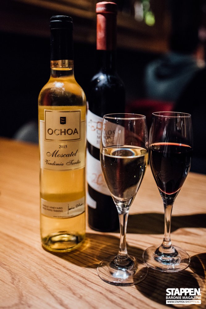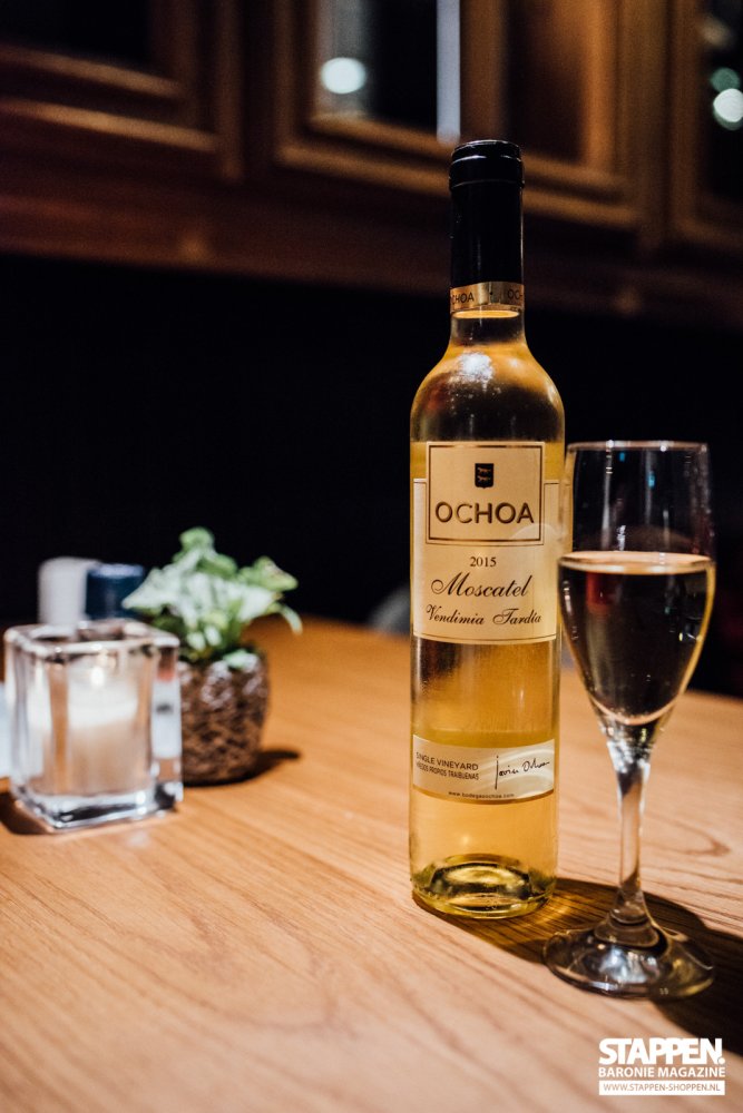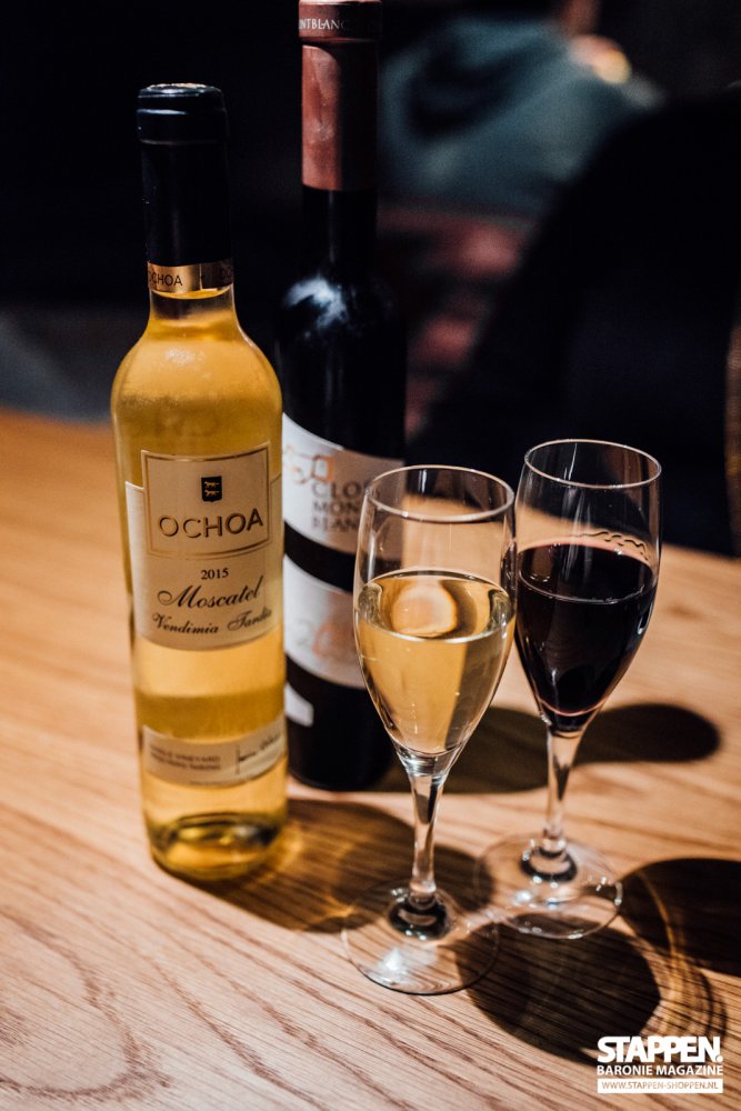 Bij deze desserts worden mooie dessertwijnen geschonken. Een 'Clos Montblanc Verema Tardana' en een 'Ochoa Moscatel'. Deze wijnen zijn heerlijk zoet en complenteren perfect de nagerechten. De Clos Montblanc Verema Tardana is intens van smaak, met tonen van gedroogde vijgen, pruimenjam en kweeperen. De Ochoa Moscatel is geselecteerd uit alleen de beste druiven met het hoogste suikergehalte en geeft een mooie intense balans tussen zoet en zuur, boeket van meloen en citrus, met smaken van perzik en bloemen.