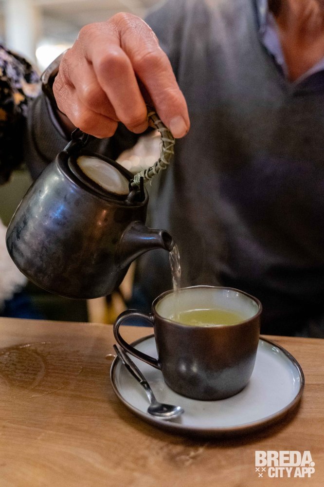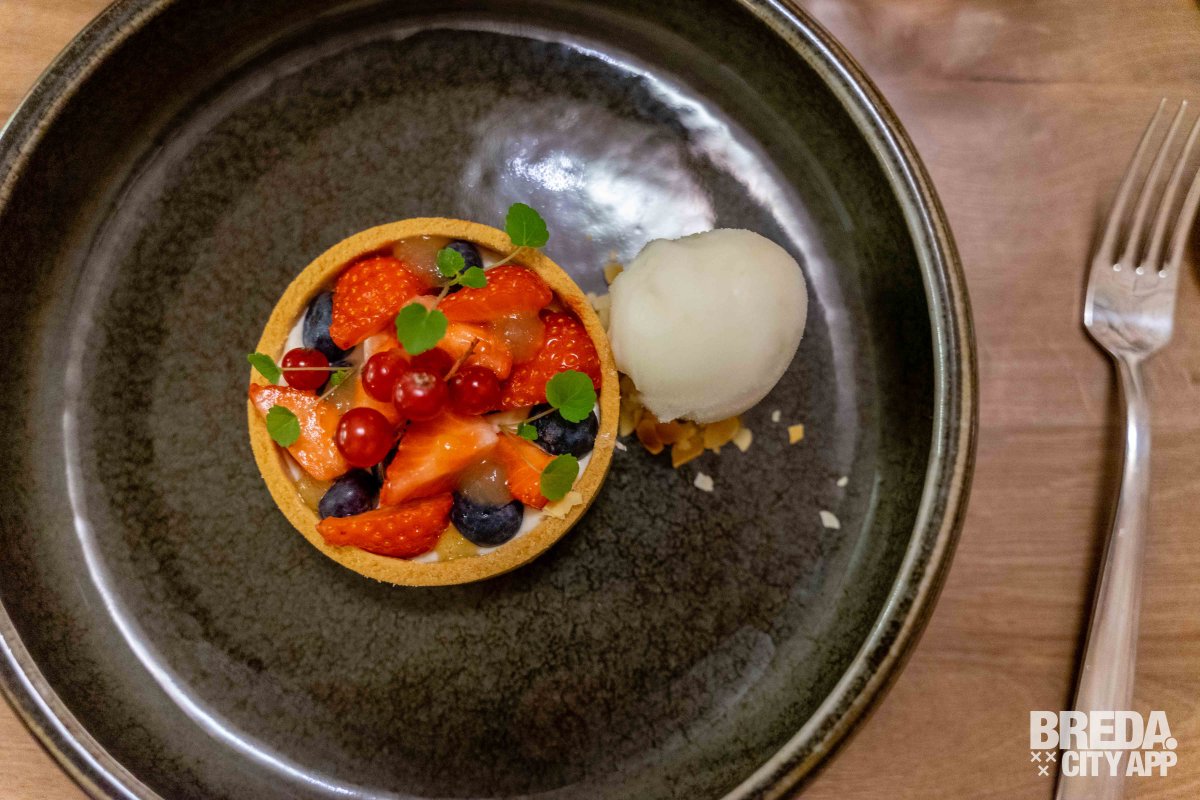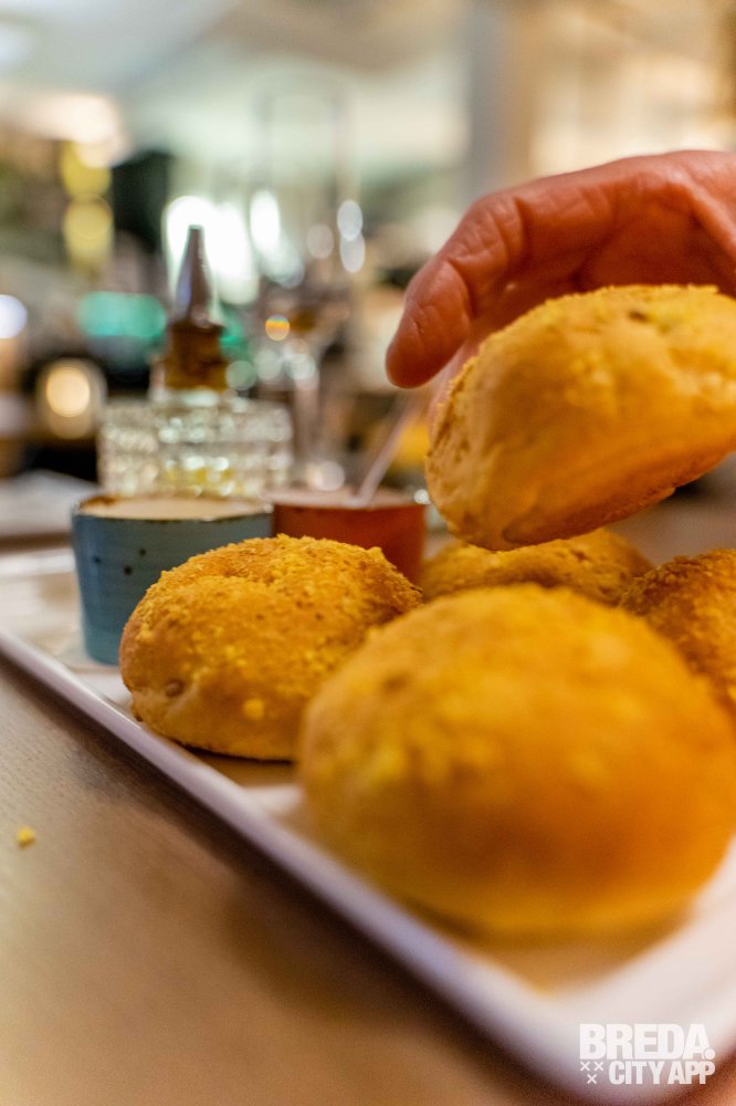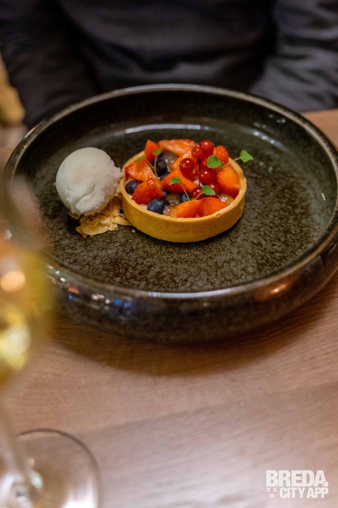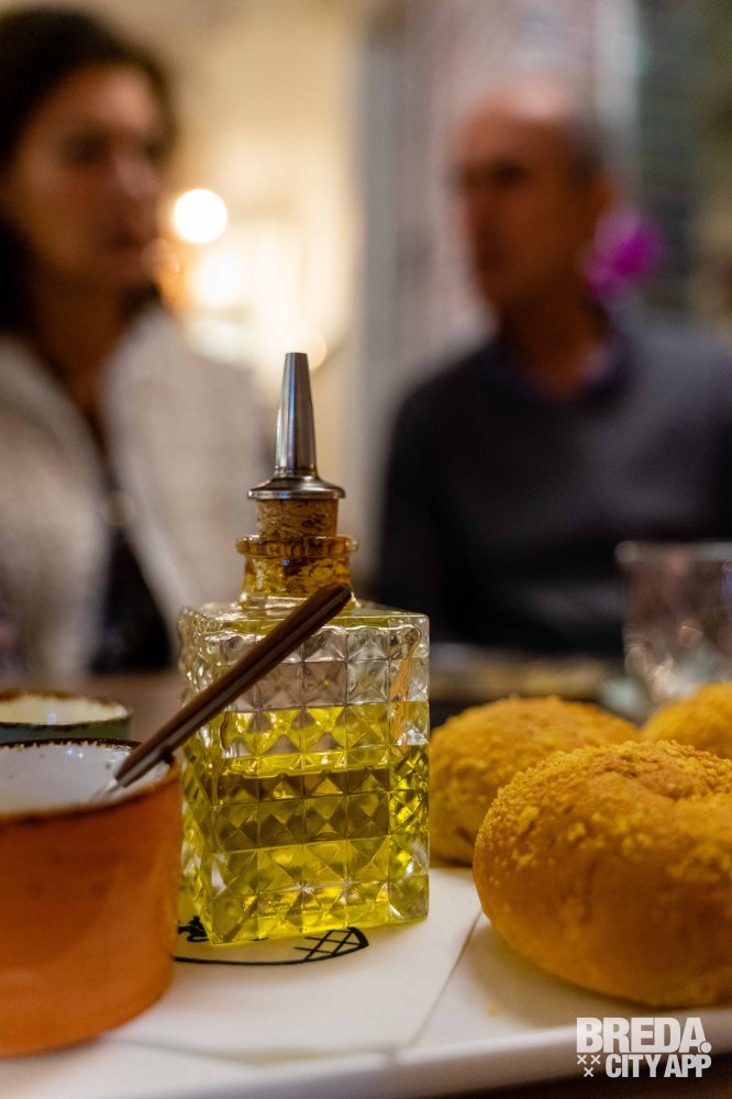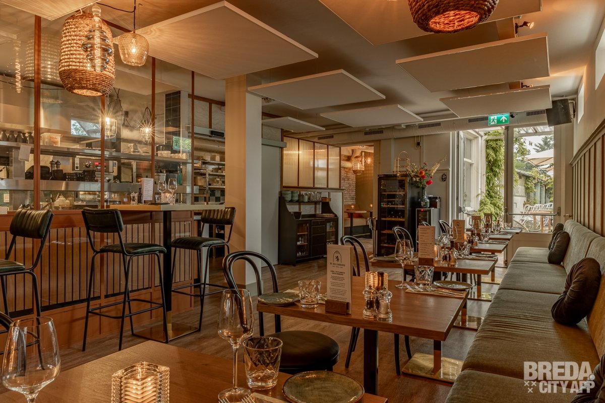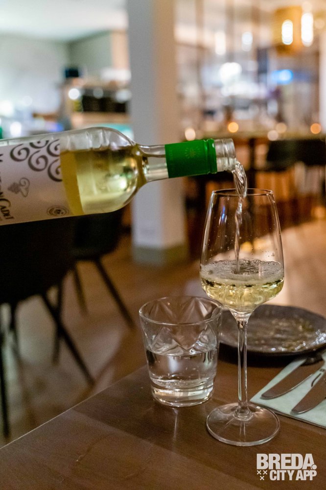 De Dillenburg in het Ginneken heeft gezellige zithoekjes en een open keuken. We kiezen een tafeltje in de hoek en zien een verrassende wijn op de kaart staan: Light Live Sparkling Rosé, alcoholvrij. Echt een aanrader en een mooi alternatief voor de bob onder het gezelschap! We krijgen een amuse van gerookte pastrami, cherrytomaat, truffelmayonaise en basilicum. Mals, romig en frisse smaken passen perfect bij de mousserende rosé.