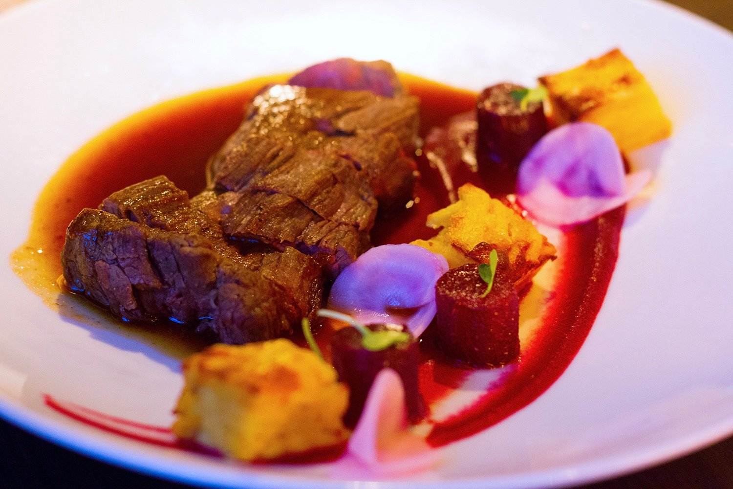 Ook proefde ik nog een stukje van de "Bavette Steak" met lekkere Hollandse bieten. Ook dit gerecht was voor een niet vleeseter een toppertje.
