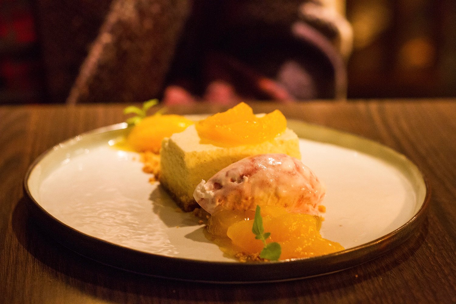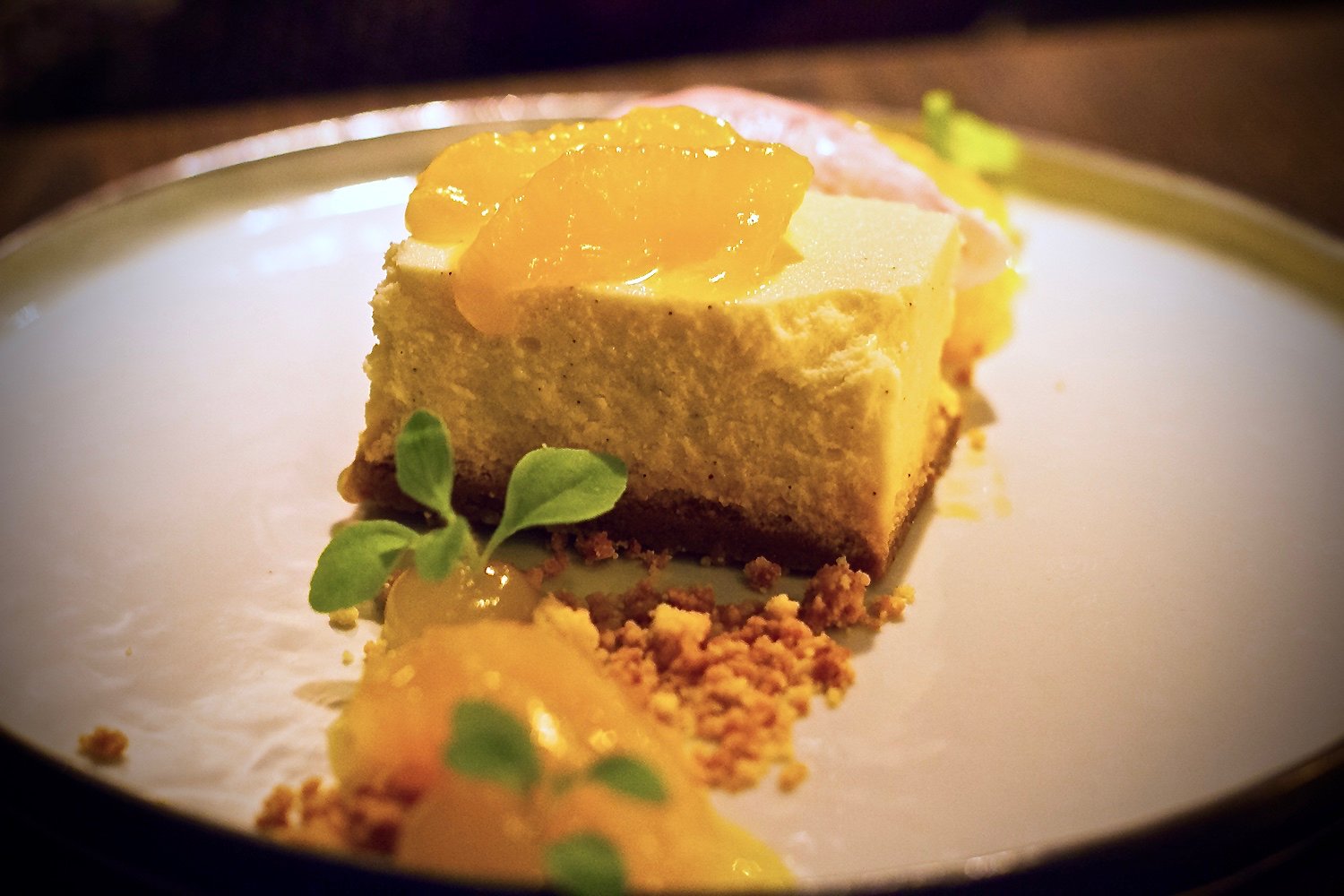 Ook pikte ik weer wat mee van het andere bord. Een kleurrijke cheesecake van kumquats, sinaasappelcompote en met yoghurt/bessenijs. Bij een dessert hoort natuurlijk ook een dessertwijn. Ik liet me verrassen en kreeg een fruitige wijn uit Spanje. Met een smaak van sinaasappel, rozijnen, bloemige oranjebloesem en honing maakt deze smaak sensatie het geheel compleet.