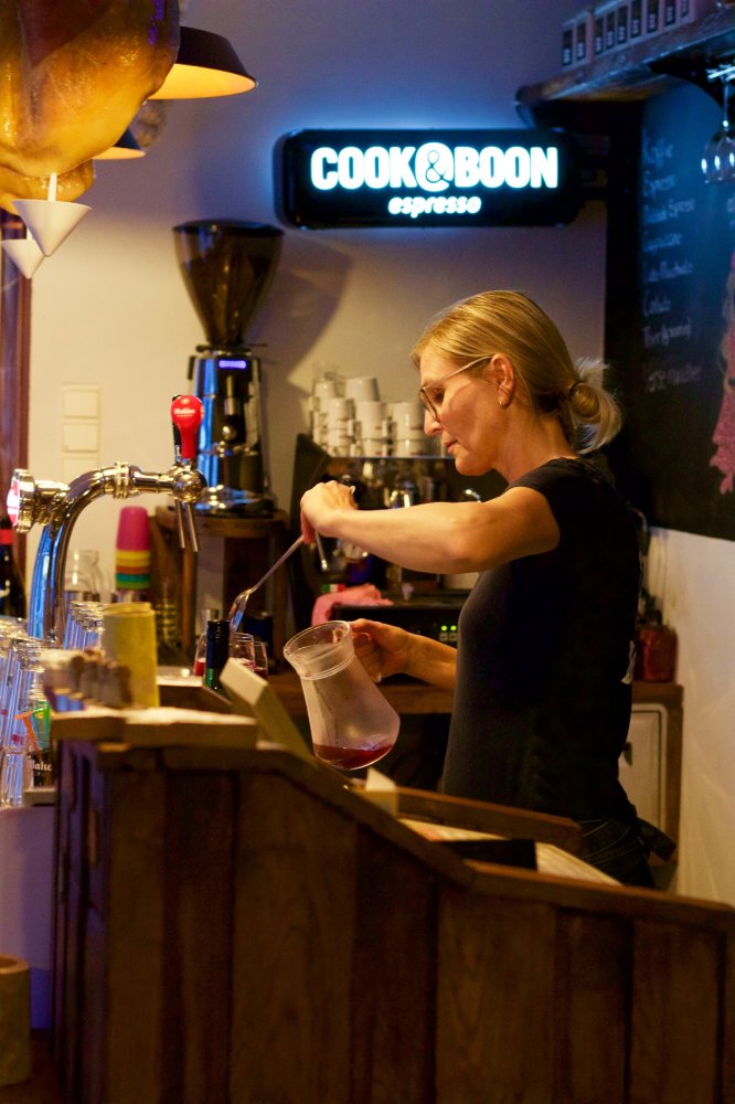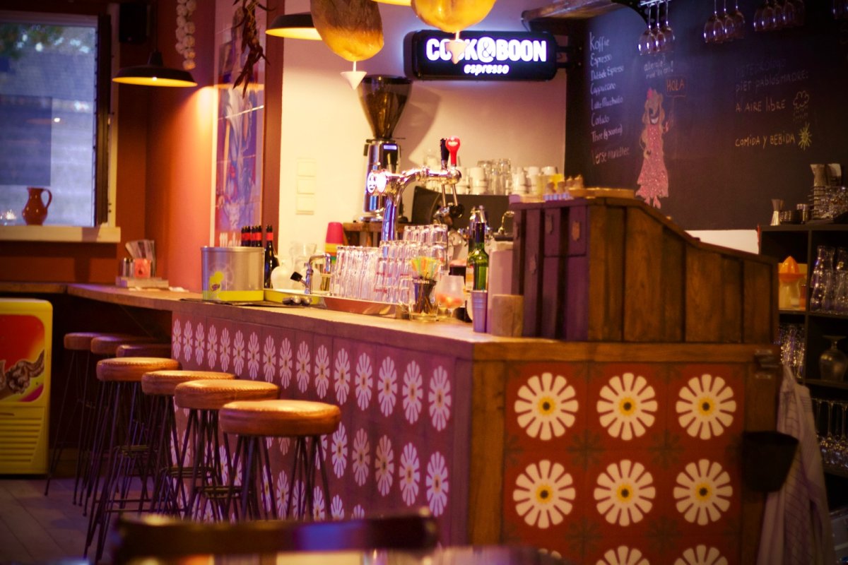 Op maandagavond stappen wij vanuit de koude mist de warmte in bij Comida y Bebida in Ulvenhout. We worden gelijk omhuld door een warme Spaanse sfeer; de mooie bar met Spaanse terracotta tegels, dikke hammen aan het plafond en aan de wanden prachtige afbeeldingen van de Spaanse cultuur. Op de achtergrond klinken vrolijke Spaanse liederen.