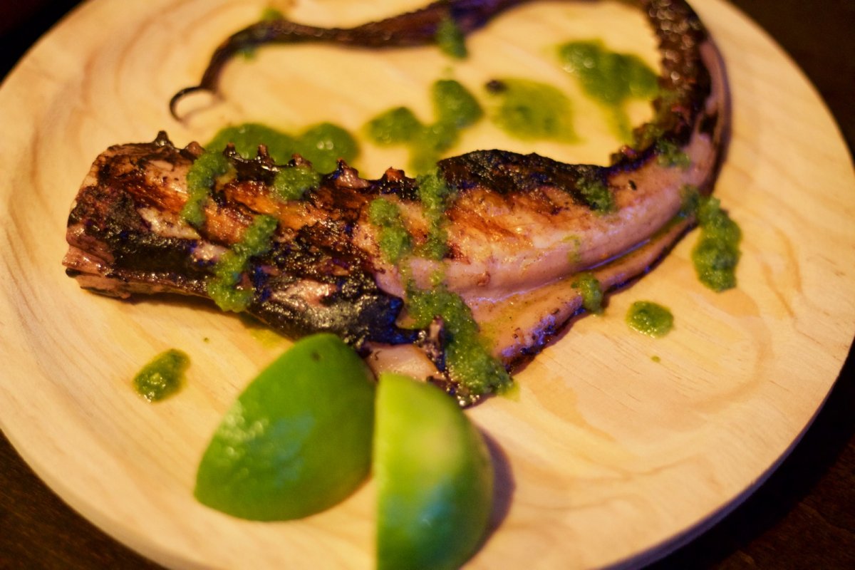Een bijzonder gerecht is zeker de ‘pulpo asado’, de octopus van de gril met een bijzondere saus waarin we zoet, zuur én spicy proeven. Achter de precieze samenstelling komen we vanavond helaas niet, want dit blijft het geheim van de chef!