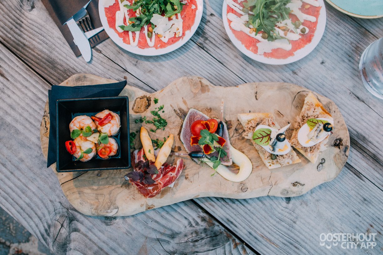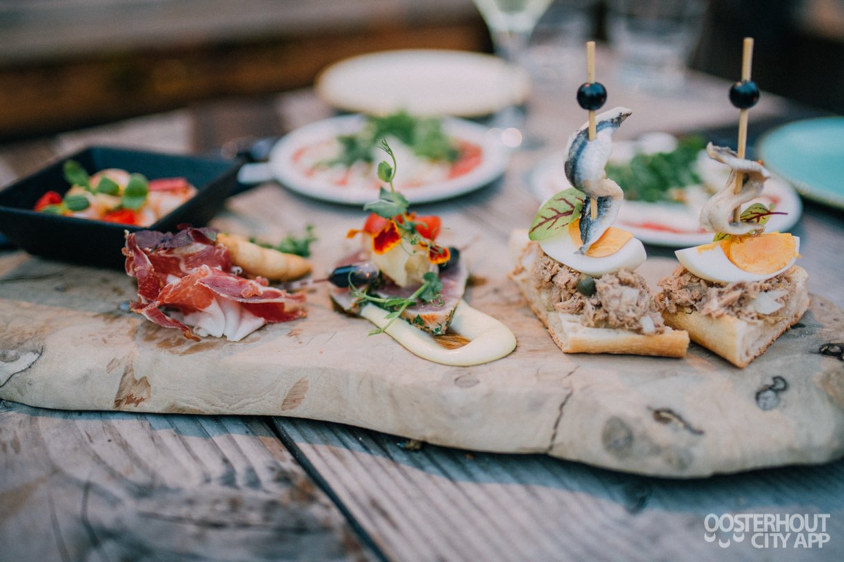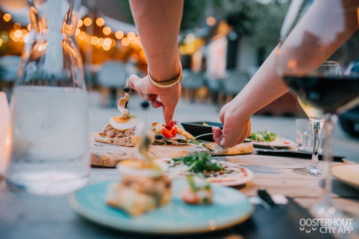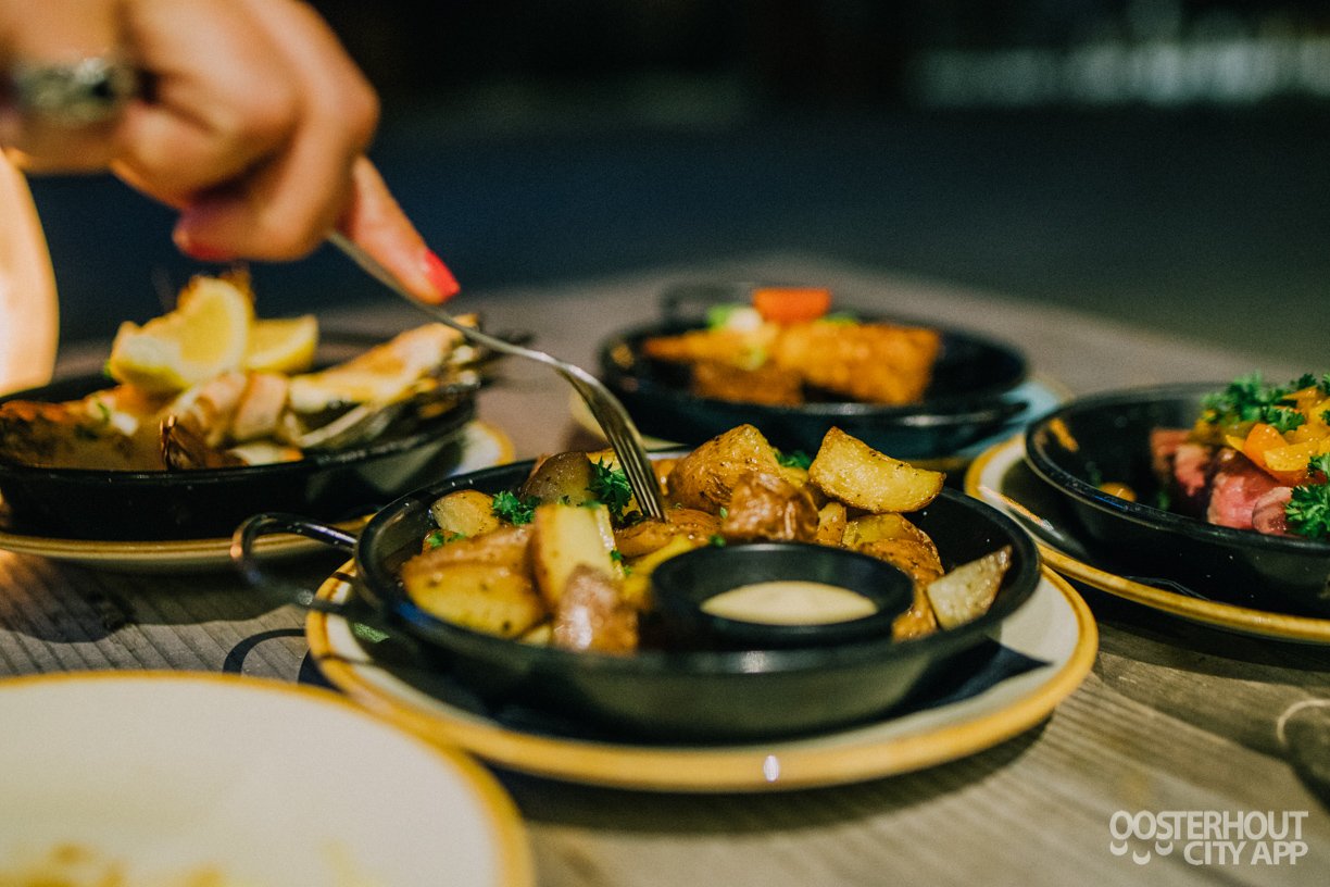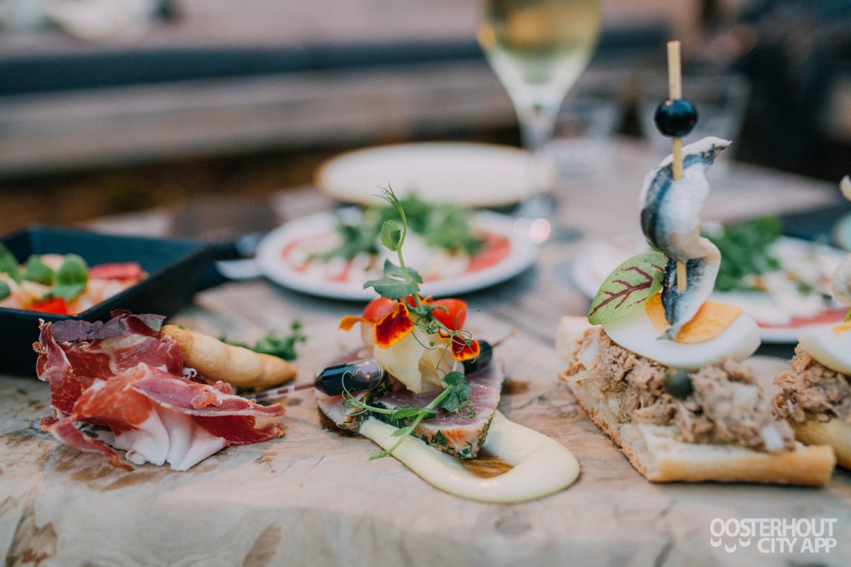 Dan mogen we twee dames zijn, maar we zijn niet vies van een avondje lekker eten. Na een perfecte break tussen de vier rondes in, zijn we klaar om de derde ronde te trotseren. Dit keer worden we verrast met klassiekers én nieuwe, warme gerechtjes. Twee tijgergamba's staren ons aan, de welbekende patatas aioli staan voor ons klaar, er ligt een tortilla de patata op de plank én malse, gemarineerde 'Salentein Premium Beef' entrecotes. Ondertussen wordt het donker en door de leuke terraslampjes ziet het er sfeervol uit buiten. Daarnaast hebben we helemaal niet het idee dat we midden in het centrum van Oosterhout zitten. Van de drukke Klappeijstraat merken we niets en door de decoratie worden we compleet ondergedompeld in de mediterraanse sferen.