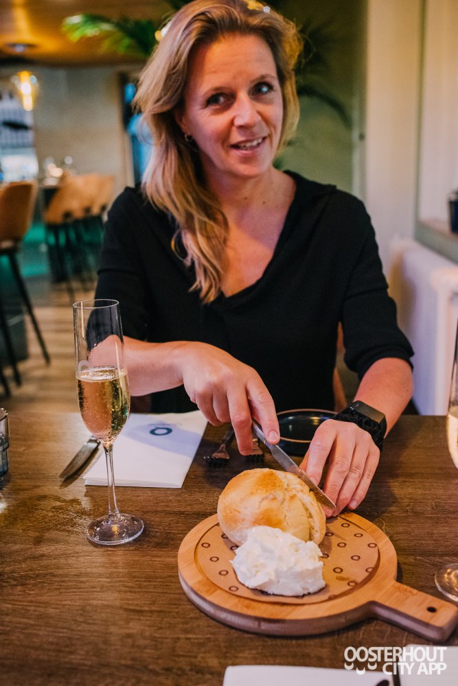 Van deze tijdgeest, het bestellen verloopt via een QR code. Dit werkt gemakkelijk en de gerechten worden duidelijk aangegeven. Er is een goede uitgebalanceerde kaart. Ondertussen kunnen we ongestoord ons gesprek voortzetten. De bediening is behulpzaam en er wordt geregeld gevraagd of alles duidelijk voor ons is. En dat is het.Bij elk gerechten wordt een wijn voorstel gedaan. Daar hebben wij gebruik van gemaakt en de wijnen passen erg goed bij de gerechten. We beginnen met een heerlijk knapperig zuurdesem broodje met luchtige gezouten roomboter.