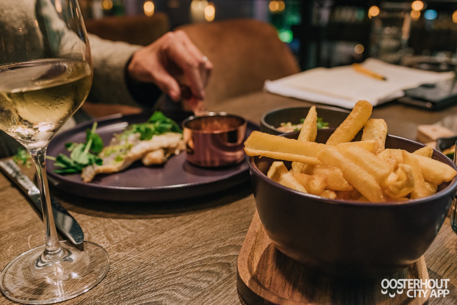 Bij de ‘Sucade met Madeira saus en 5-spice’ zit een heerlijk kruidige crumble. Bij de gebakken ‘Zeebaars met tomatenvinaigrette en dragon’ een verfrissende salsa. De sucade is heerlijk mals en de vis precies goed gegaard en goed smaak op gebracht. Als bijgerecht bestellen wij krokante frietjes besteld met ‘Gegrilde courgette groene kruidensalsa en gepofte mais’. Ook hier weer een verrassende mix van smaken.