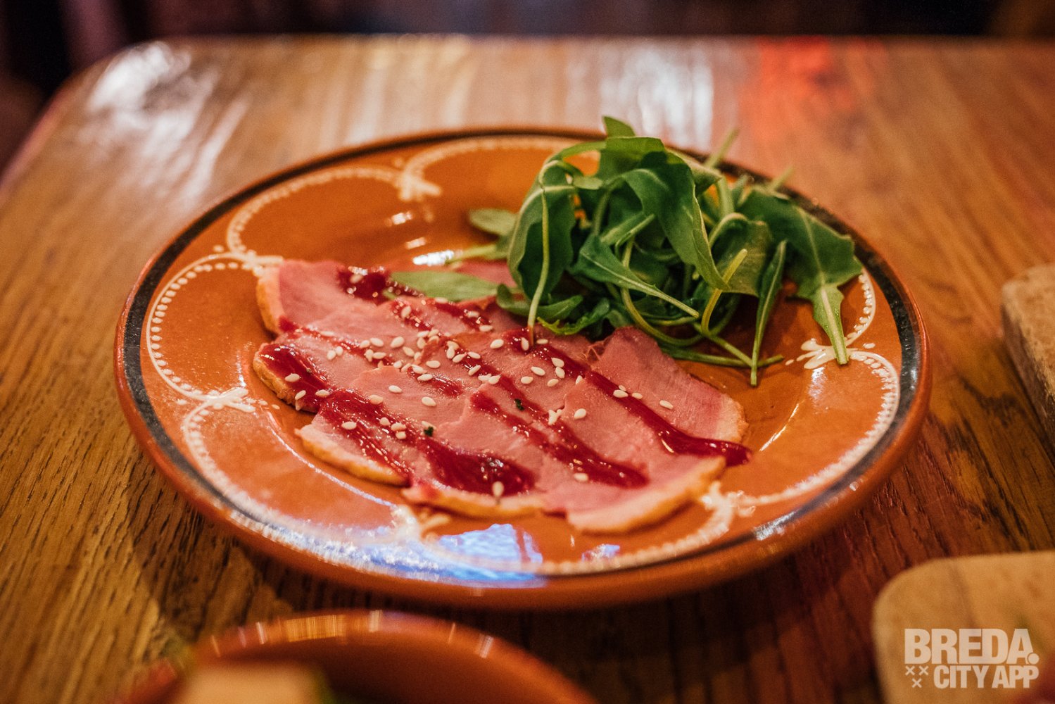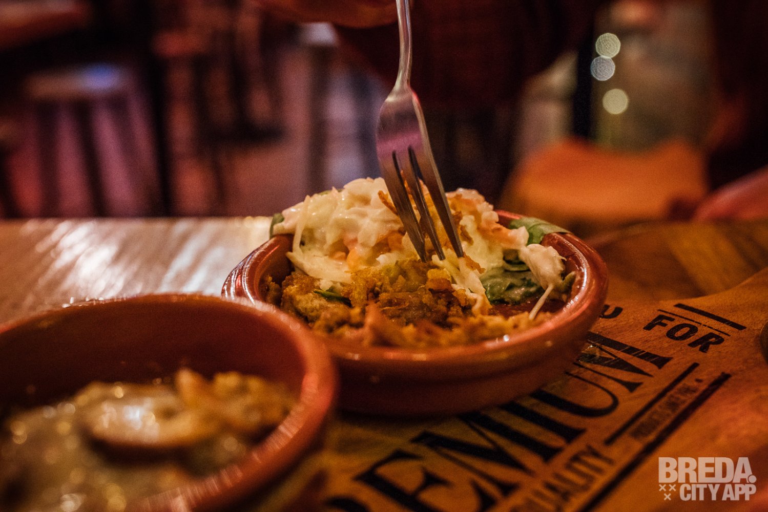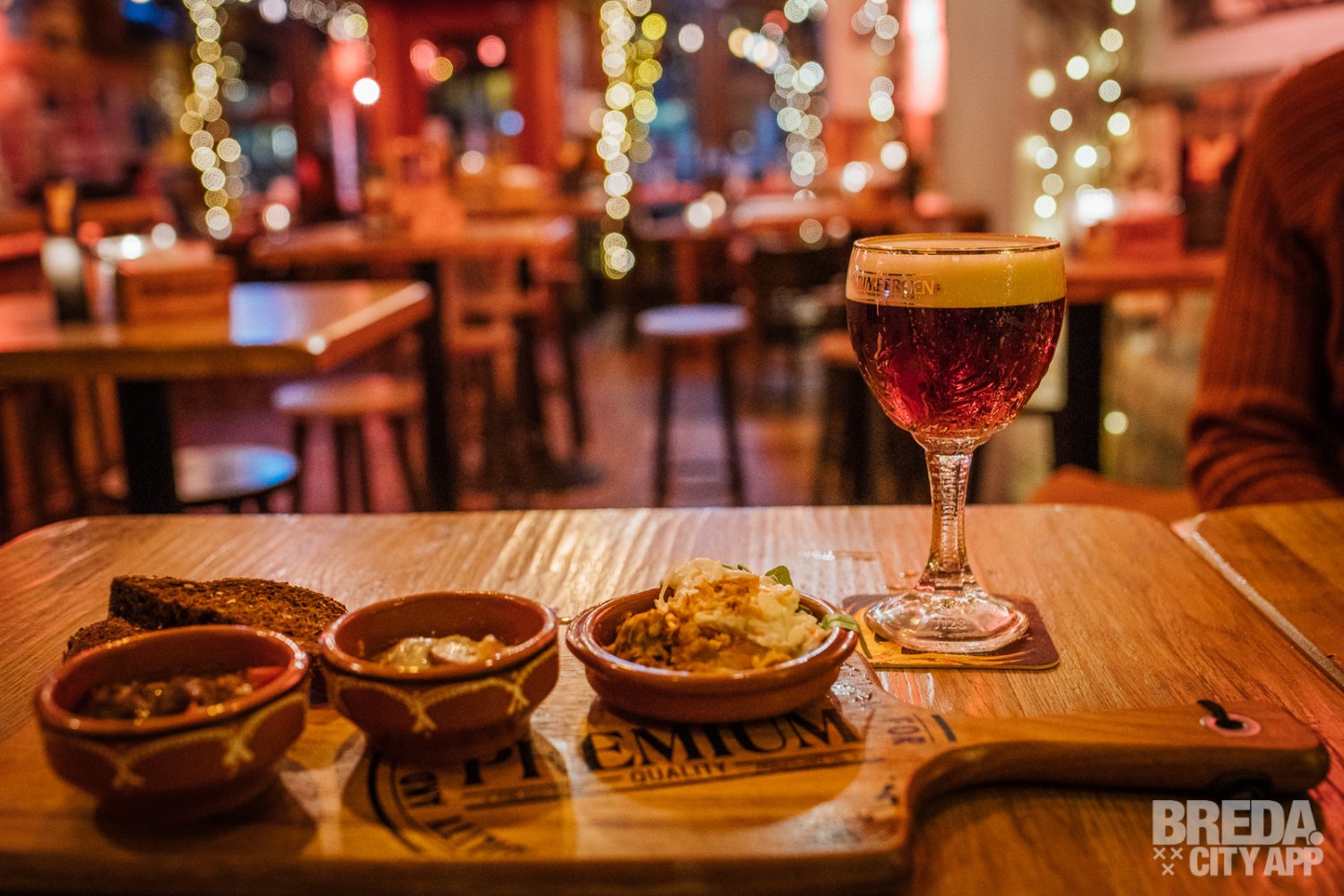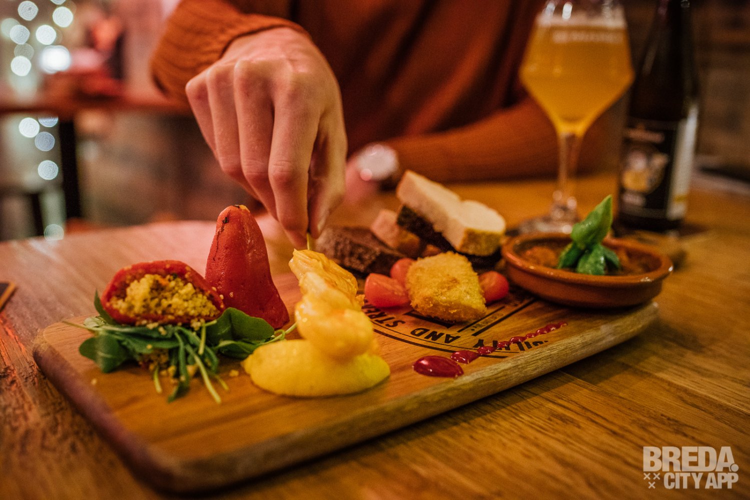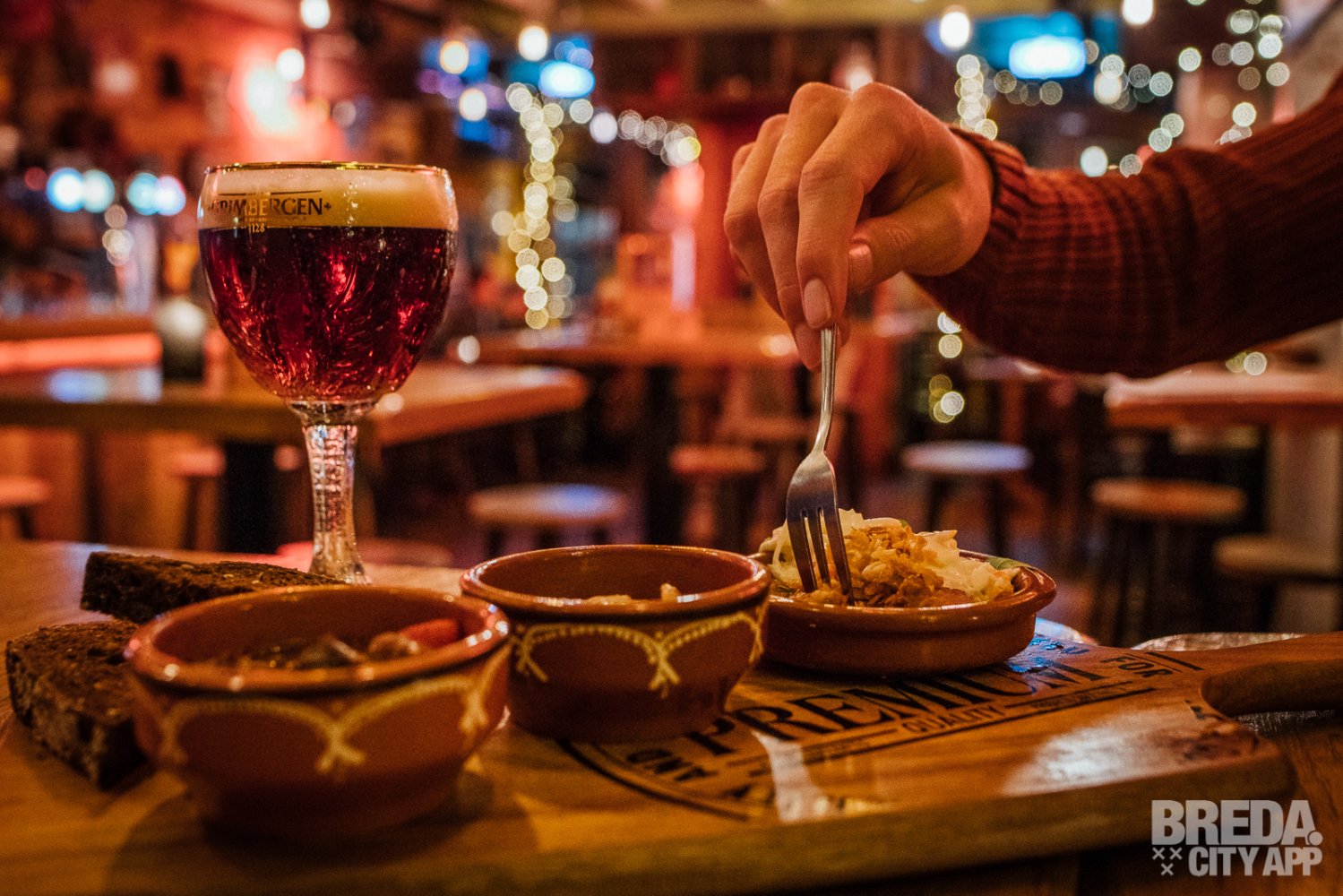 Bij De Markt serveren ze niet alleen een uitgebreid assortiment tapas, ook de speciaal bierkaart is enorm en gevarieerd. Met buiten de kaart een aantal wisselende bieren een hotspot voor de bierliefhebbers onder ons. Wij starten met een Ej Kul, een echte Bredase! Een goede start op een koude dag, Ej Kul is een blond bier; niet té fris, niet té zwaar, gewoon hartstikke lekker.