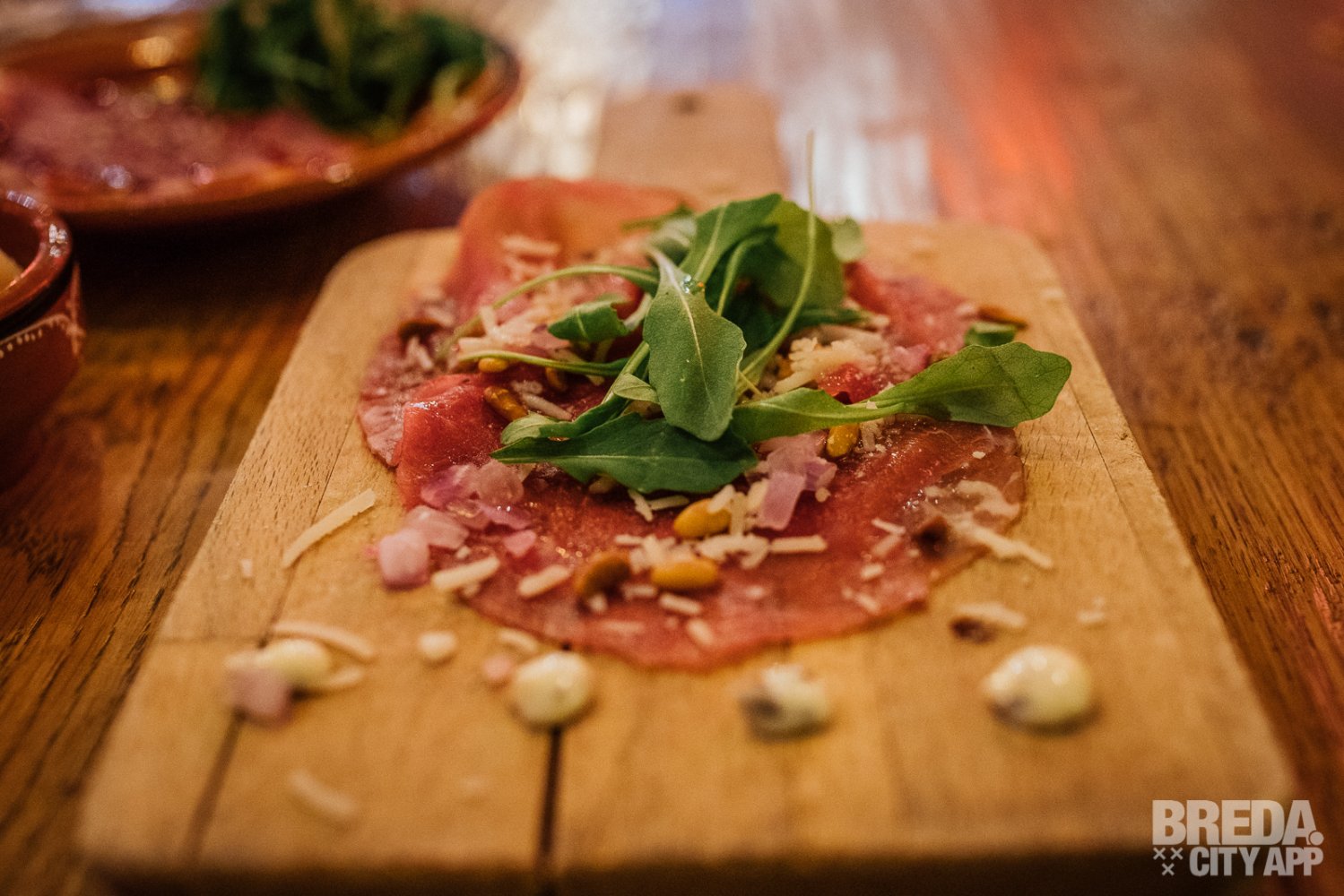Nieuw op de kaart: de carpaccio. Op veler verzoek dan eindelijk vast op de kaart. De carpaccio is compleet, lekker met truffel-mayonaise!