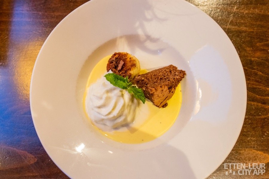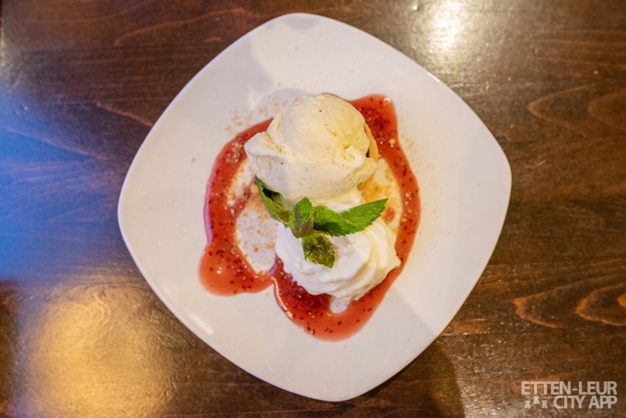 Na het genieten van onze hoofdgerechten en het proeven van de goede sfeer gaan we nog voor een zoete afsluiter. De keuze valt op Blondie & Brownie, een combinatie van een witte- en pure chocolade brownie geserveerd met vanillesaus en slagroom, echt een aanrader! Dit geldt ook voor het seizoendessert, de tartelette met bosvruchten. Mooi geserveerd op een krokant taartbodempje gevuld met room, bosvruchten en vanille-ijs. De dessertjes zijn fris en niet te zwaar.