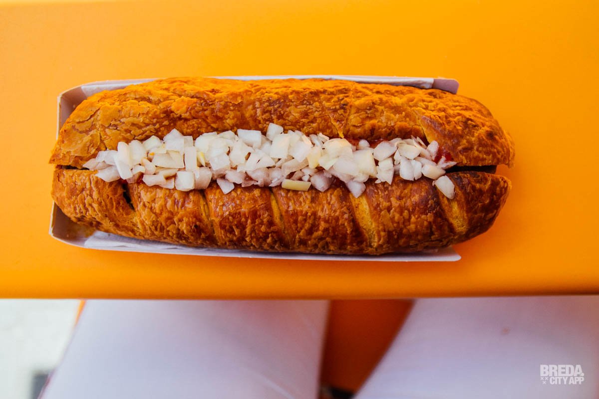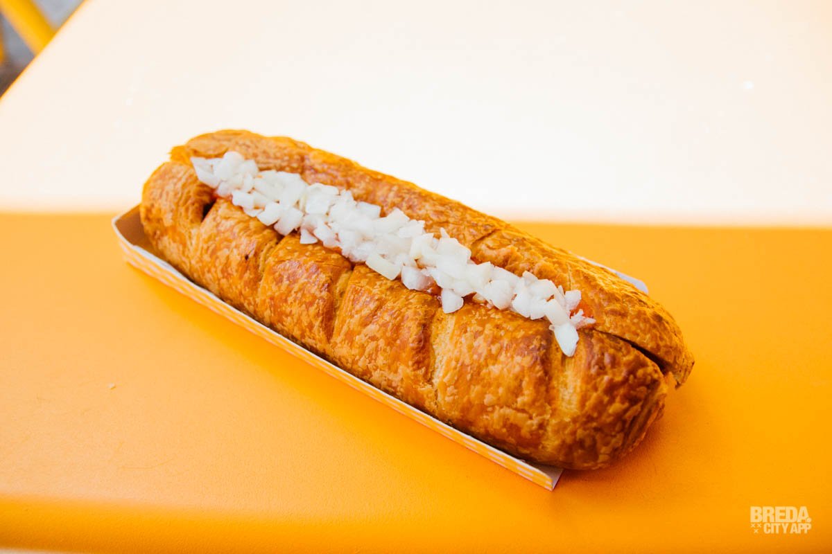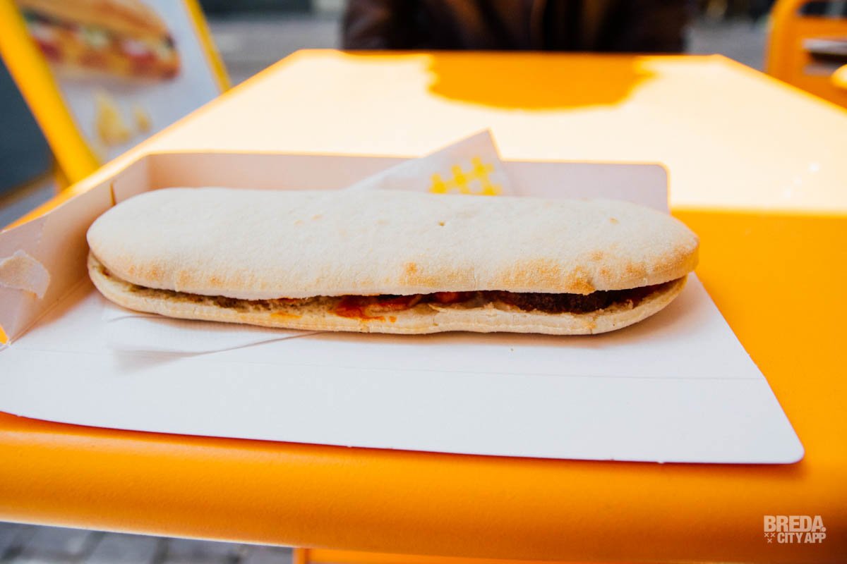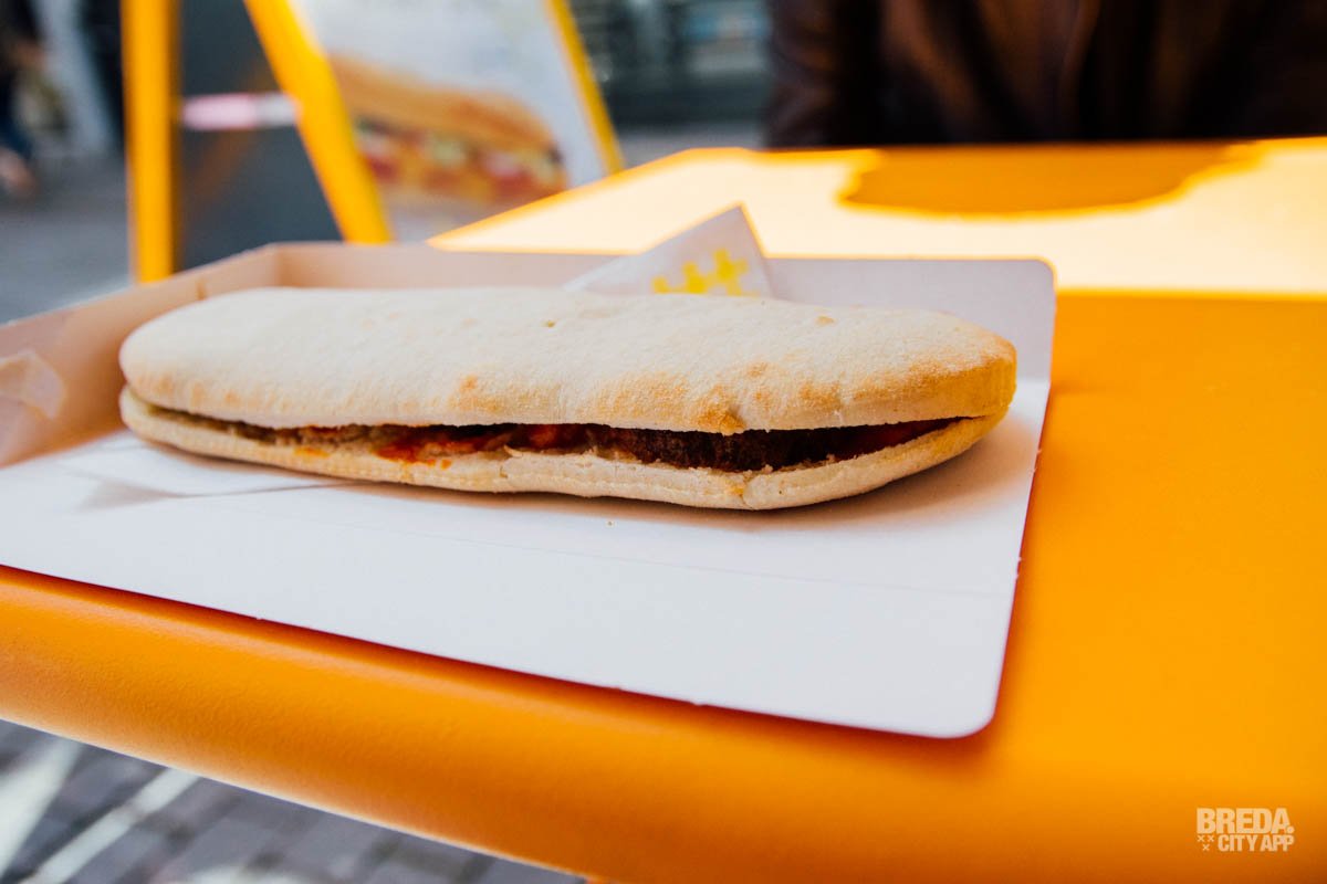 Mijn tafelgenoot krijgt de ‘’Doe eens special!’’ Een Belgisch worstenbroodje met martinosaus en uitjes. Eens een keer wat anders dan een Brabants worstenbroodje. De martinosaus in combinatie met de uitjes geeft iets speciaals aan het Belgisch worstenbroodje. Het is een verrassende combinatie met een lekkere bite, en zeker erg lekker!