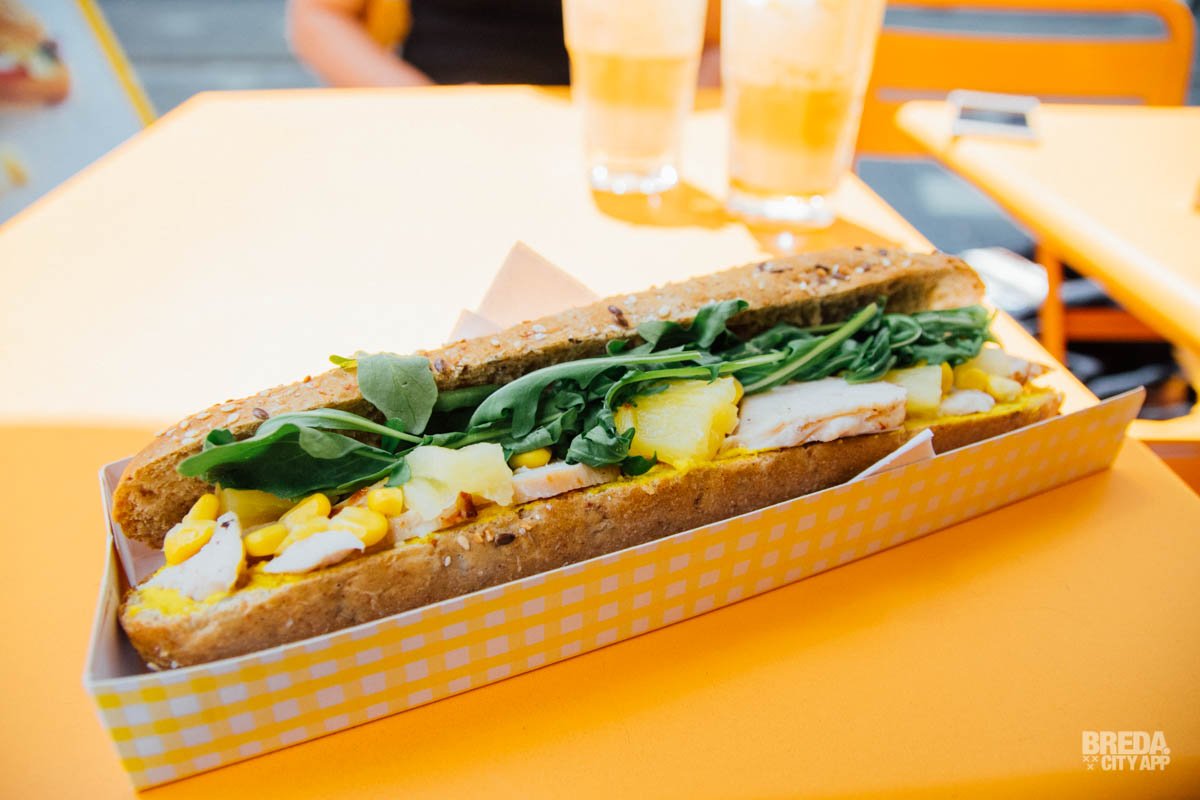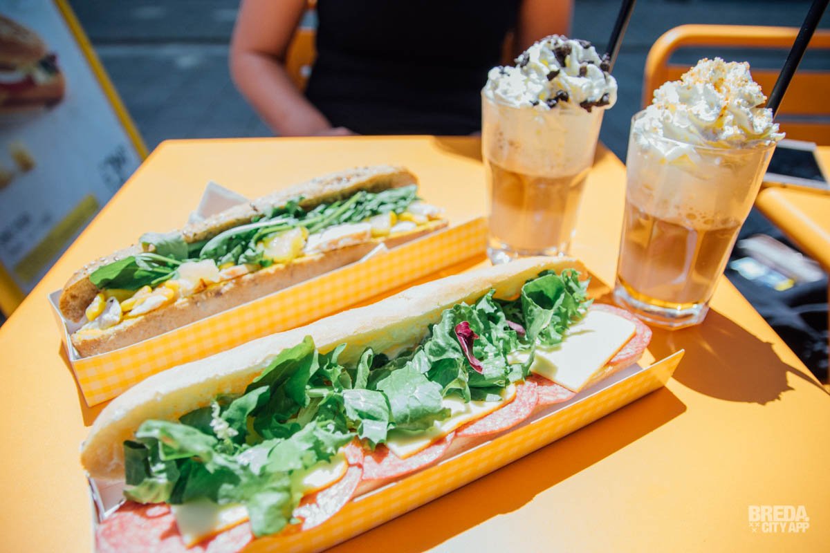 Bij binnenkomst worden wij vriendelijk ontvangen door eigenaresse Annemarie. Aangezien het heerlijk weer is, kiezen we ervoor om op het terras aan de Lange Brugstraat te gaan zitten. Door het winkelende publiek is het erg gezellig om op een zomerse dag hier te genieten van je lunch. Al snel komt de vraag wat we graag willen eten. Aangezien er genoeg keuze is en wij niet kunnen kiezen, besluiten we ons te laten verrassen. Annemarie geeft aan dat er onlangs nieuwe broodjes zijn toegevoegd aan het menu. Zo heb je nu 'foodie broodjes' en 'vegan broodjes'.