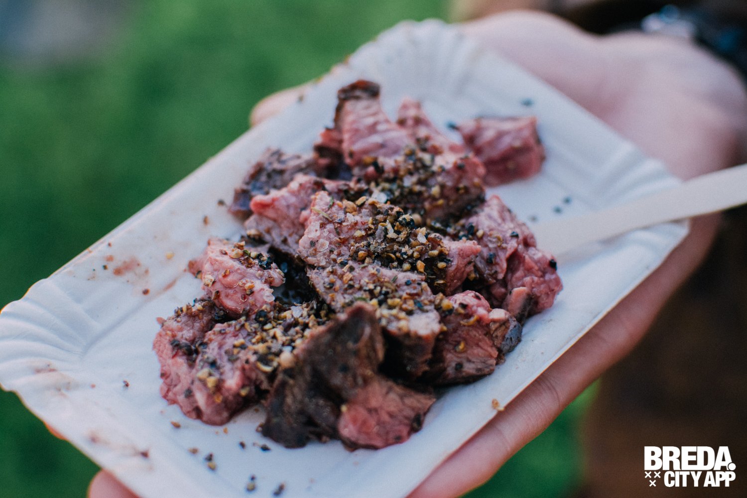 Vervolgens gingen we door naar een van mijn favoriete foodtrucks op het festival, waarbij het motto “proeven = geloven” centraal staat. We kregen mooi fijngesneden stukjes malse steak, die enkele seconden daarvoor gegrilled werd op de the Big Green Egg, een moderne keramische barbecue. De steak werd getopt met zeezout en honingpeper, een uitste(a)kende combinatie!
